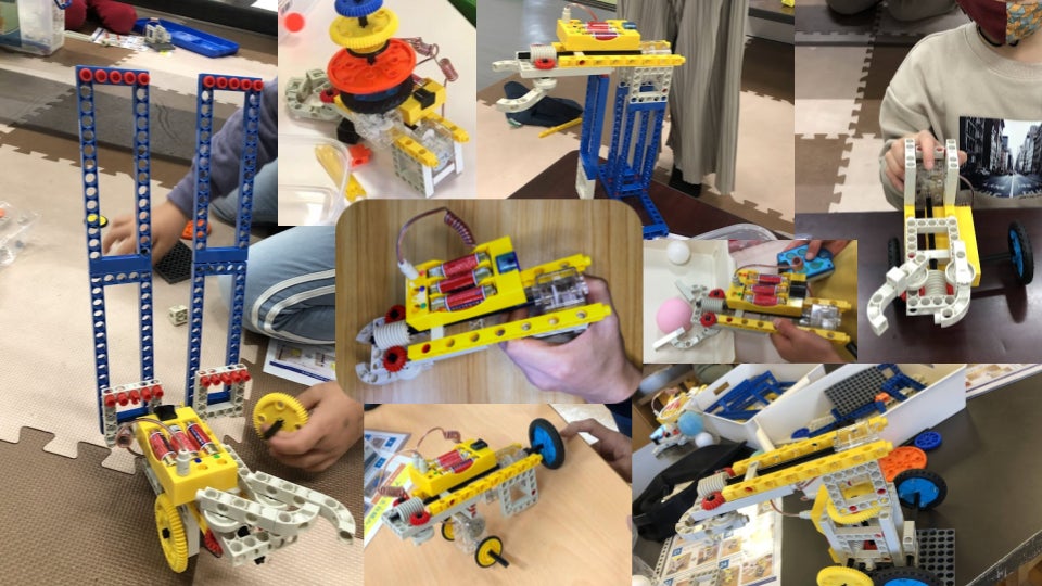 ある子どもは車にしただけでなく、モーターで動くようにギアの組み合わせまで考えます。