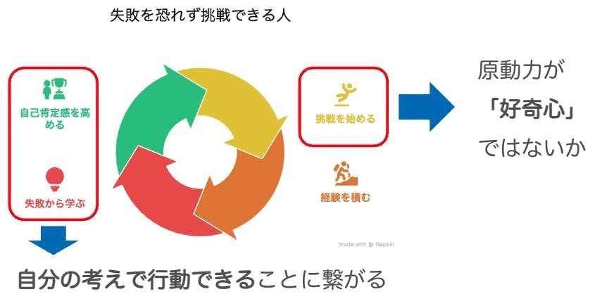 好奇心を溢れさせ、試行錯誤を楽しみ、失敗から学べることや、自信を身につけることが