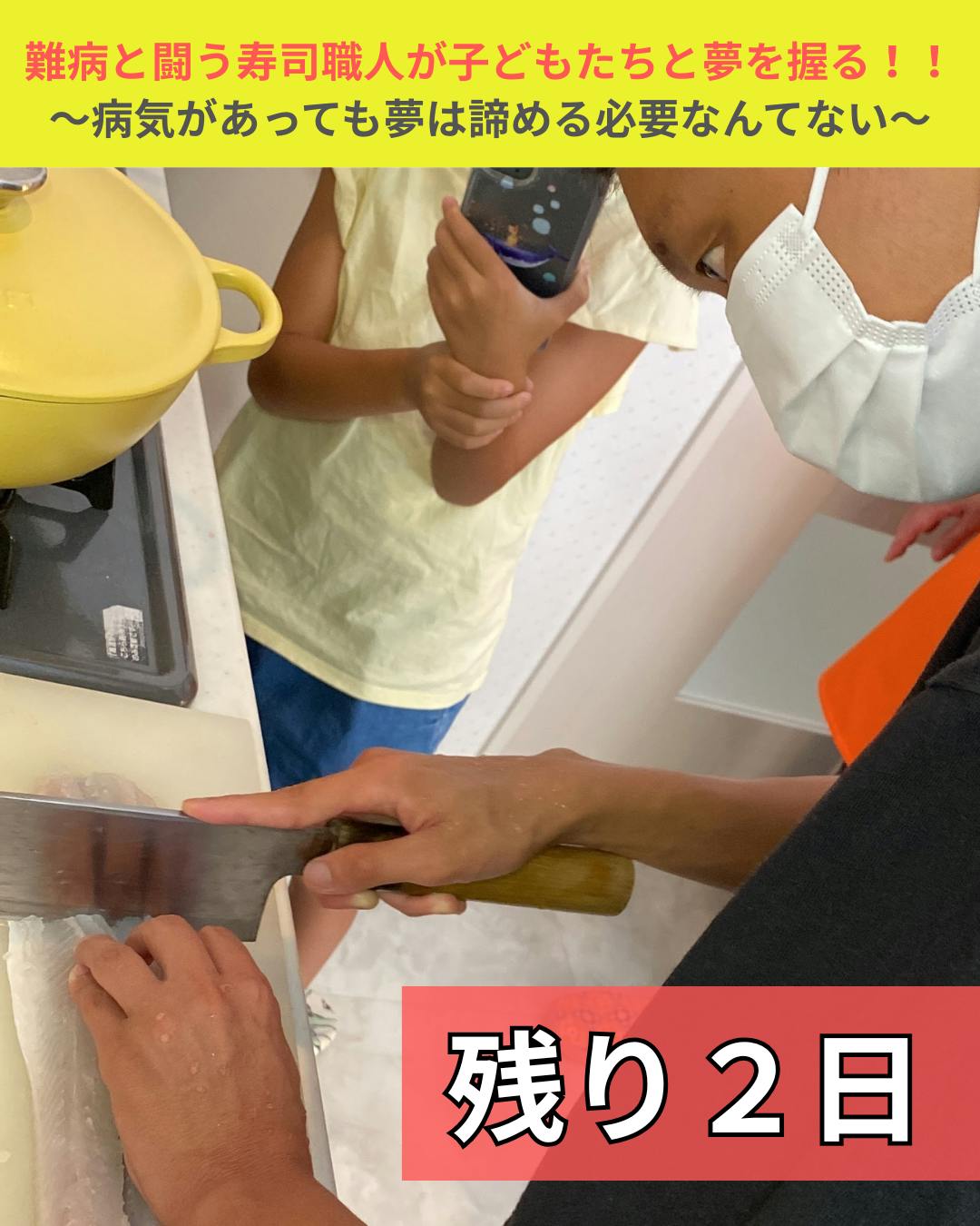 2025/12/25 00:00この写真は、僕がまだプロになる前、料理教室で鱧を捌いた時のものです。 「いつか自分のお店を持ちたい」「美味しいと言ってもらえる職人になりたい」 ただ真っ直ぐに、包丁を握るのが楽しくて仕方がなかった。あの頃の僕には、希望しかありませんでした。それからプロの道へ進みましたが、病気のために突然の「入院」を度々繰り返しています。一時は絶望し、夢を見ることを諦めそうになりました。でも、そんな僕を救ってくれたのも、やっぱり「お寿司」でした。 自分が培ってきた技術で、誰かを笑顔にできる。それは病気であっても変わらない価値だと気づいたんです。今、目標金額まであと約100万円。期限は残り3日です。僕が今やりたいのは、かつての僕のように、夢を持って何かに没頭する時間を、病気と闘う子どもたちにプレゼントすることです。 病気と闘う日々の中で自由を制限されている子たちに、「自分にもこんなにすごいことができるんだ!」という自信を持ってほしい。どうか、僕の、そして子どもたちの「夢」を繋ぐために、最後のお力を貸していただけないでしょうか。 ご支援、そしてこの投稿のシェアが、子どもたちの未来を変える大きな一歩になります。泣いても笑っても、あと3日。奇跡を信じています。#お寿司 #鮨 #すし #shushi #難病 #希少疾患 #体験会 もっと見る