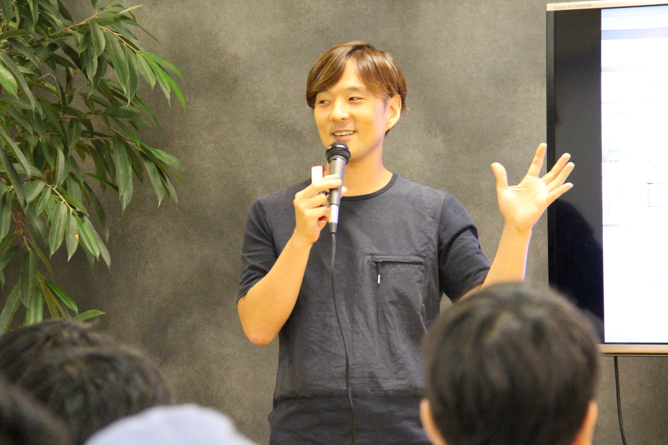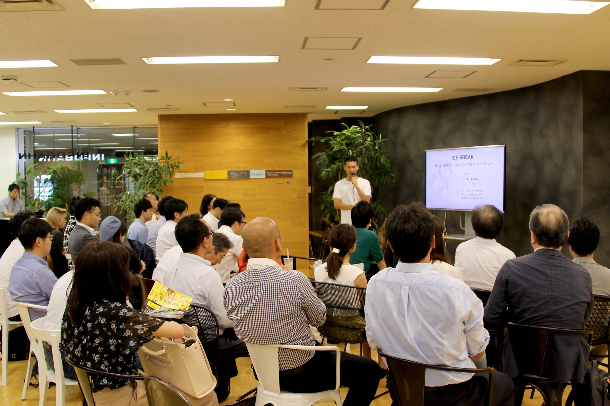 8/22 19時より神泉駅前のインフォバーンオフィスにて、渋谷区100人カイギvol.09が開催されました。今回の登壇者はsansan日比谷尚武さん、シブヤ大学 青木優莉さん、&co.横石崇さん、日本パラリンピアンズ協会 大日方邦子さん、そしてアーティスト中澤大輔さんの5名。まずはキュレーターのインフォバーン木継さんからオープニングの挨拶。