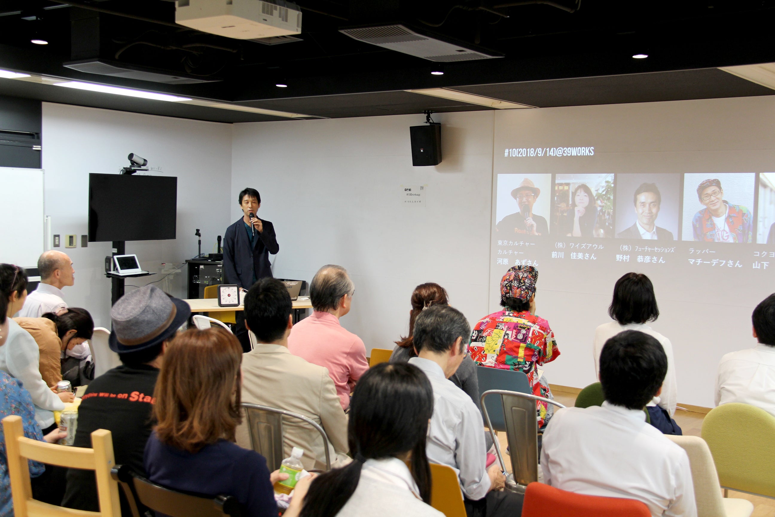 記録的な猛暑も落ち着き、秋の足音が聞こえてきた9月14日(金)の夜。渋谷駅東口の39works Satellite Officeにて、記念すべき10回目の渋谷区100人カイギを開催しました。100人の方にお話いただく100人カイギにとって、50人目のゲストを迎えるちょうど折り返し地点。金曜の夜にも関わらず、40人近い方々にお越しいただきました。
