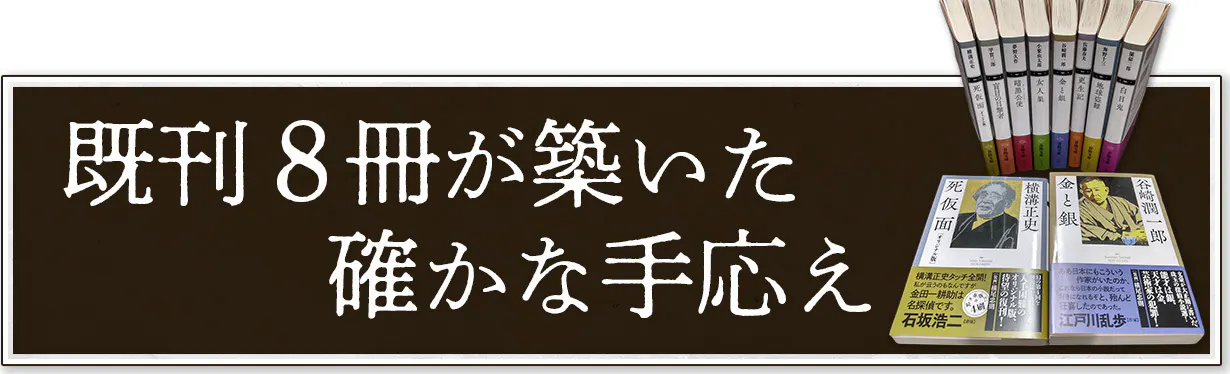 2024年の横溝正史『死仮面〔オリジナル版〕』を皮切りに刊行した既刊8冊は、ミステリファンの皆様から高い評価をいただいております。