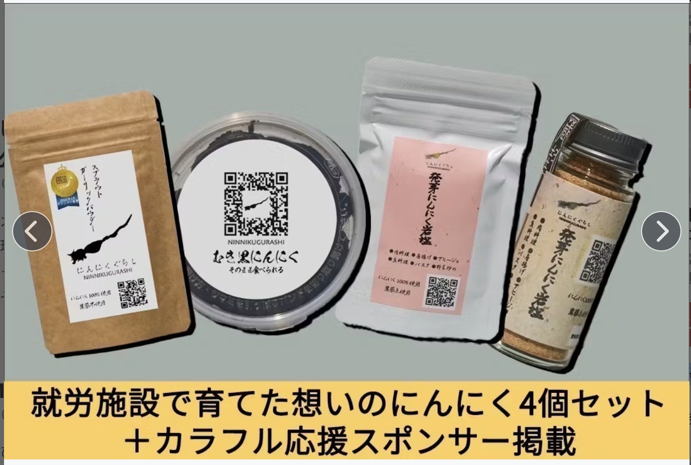 障がいのある方が丁寧に育てた“想いのこもったにんにく”をお届けします。さらに、カラフルステーションのサイトに「カラフル応援スポンサー」としてお名前を掲載いたします!