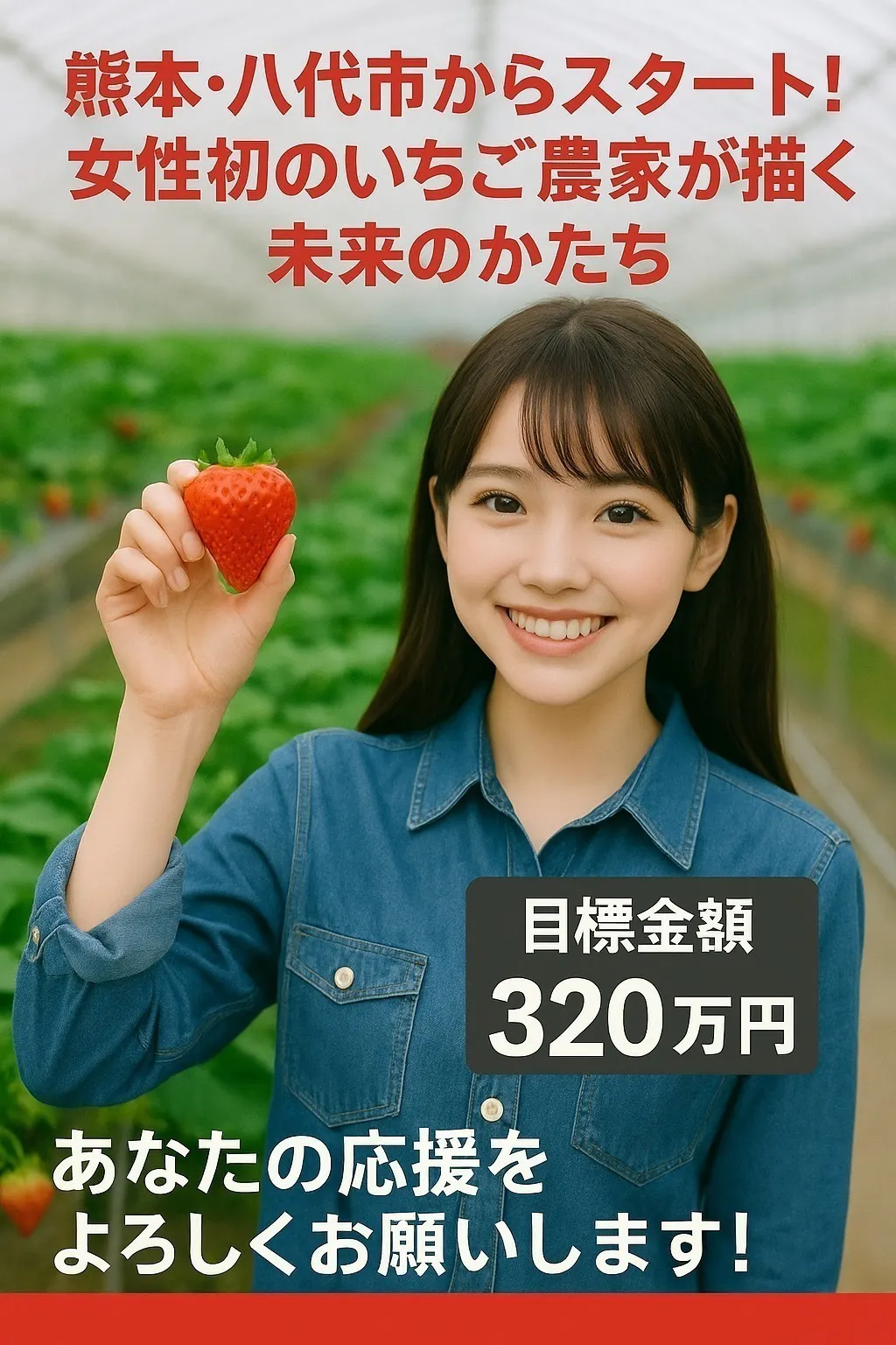 かつて農業に従事し、「いちごを育てる喜び」と「お客様の笑顔に触れる幸せ」を体感しました。そして今、熊本・八代という地で再び農業に挑戦し、同時に次の未来を描いています。