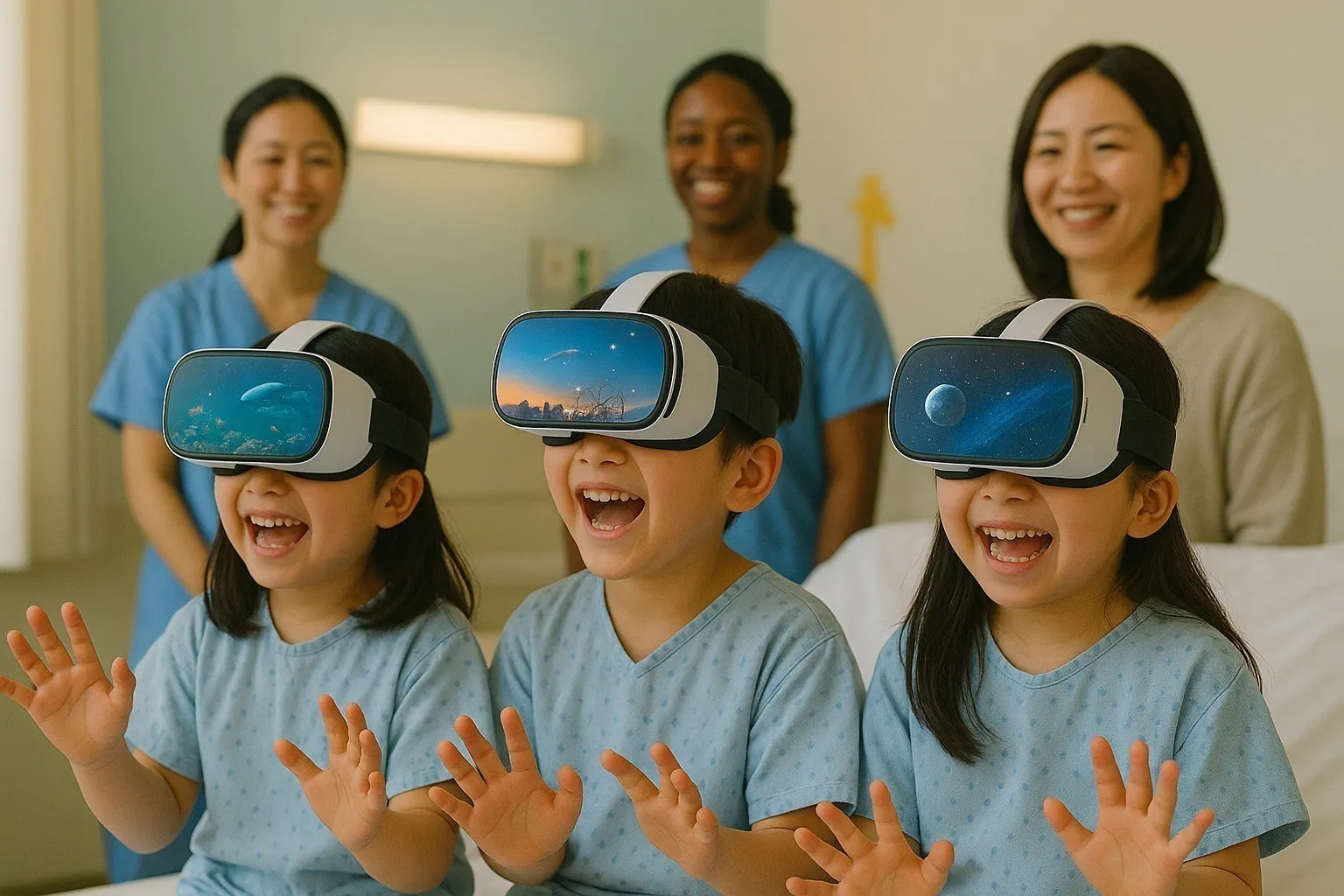 → 現役後のキャリアに悩む若者たちに、農業やサービス業など新しい選択肢を提案。 - 小児科病棟の子どもたちにVR体験を提供
