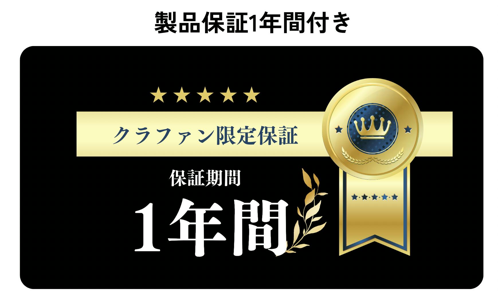 ご購入から1年間の製品保証が付いており、万が一の初期不良にも迅速に対応いたします。さらに、条件に応じて延長保証もご利用いただけます。