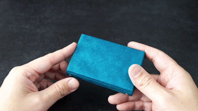 フタを引き上げる「ワンアクション」で名刺が飛び出ます。これだけ名刺が出てくるとかんたんにキャッチできるので名刺交換をスマートにおこなえます。