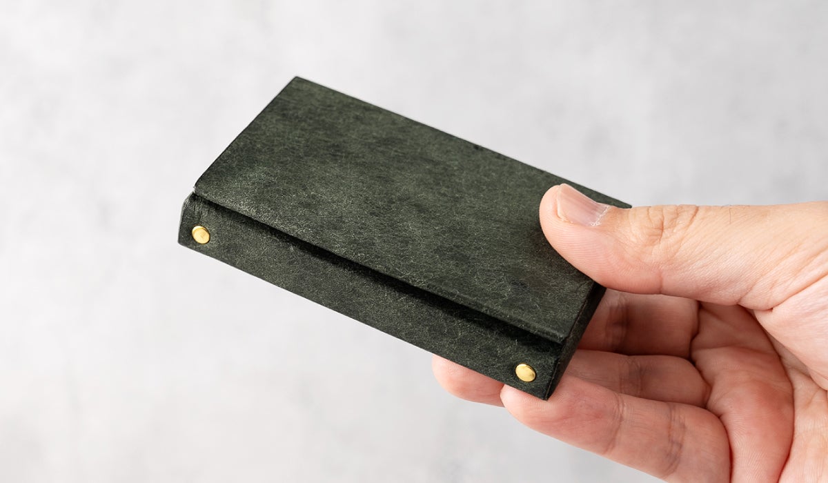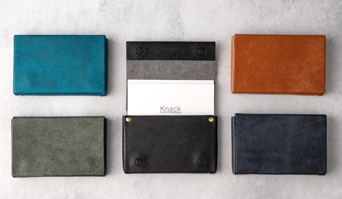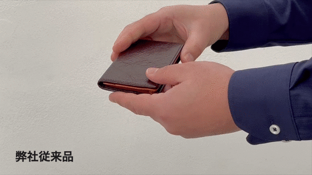 完全無縫製の名刺ギリギリサイズ。名刺が飛び出す「ポップアップ構造」で名刺をスマートキャッチ!はじめましては「スムーズ」に「スマート」に。
