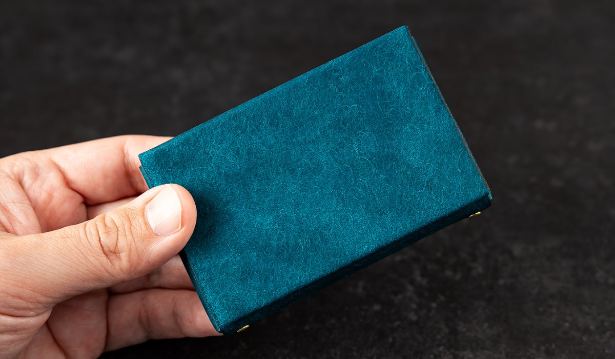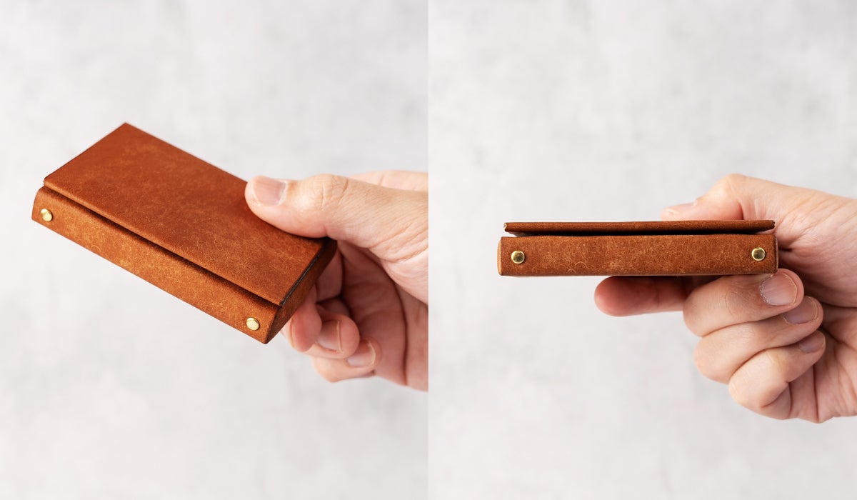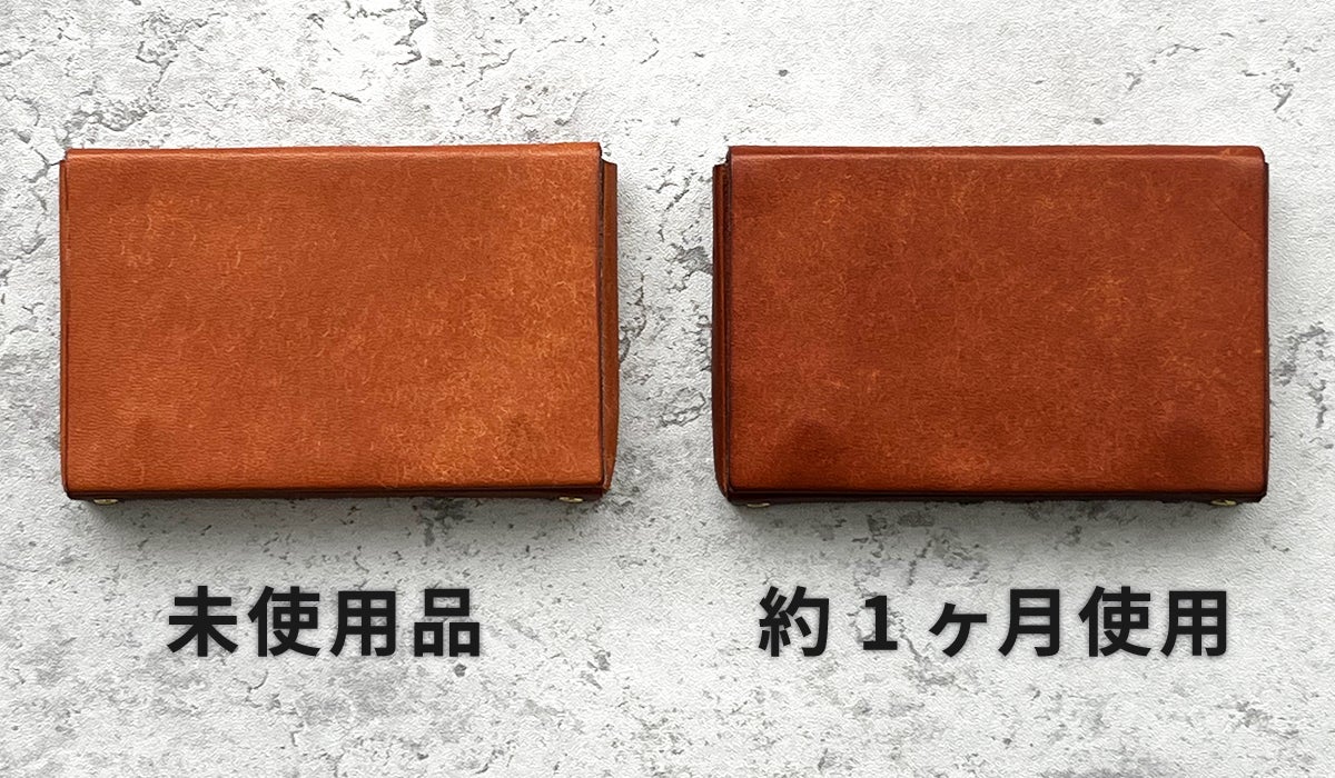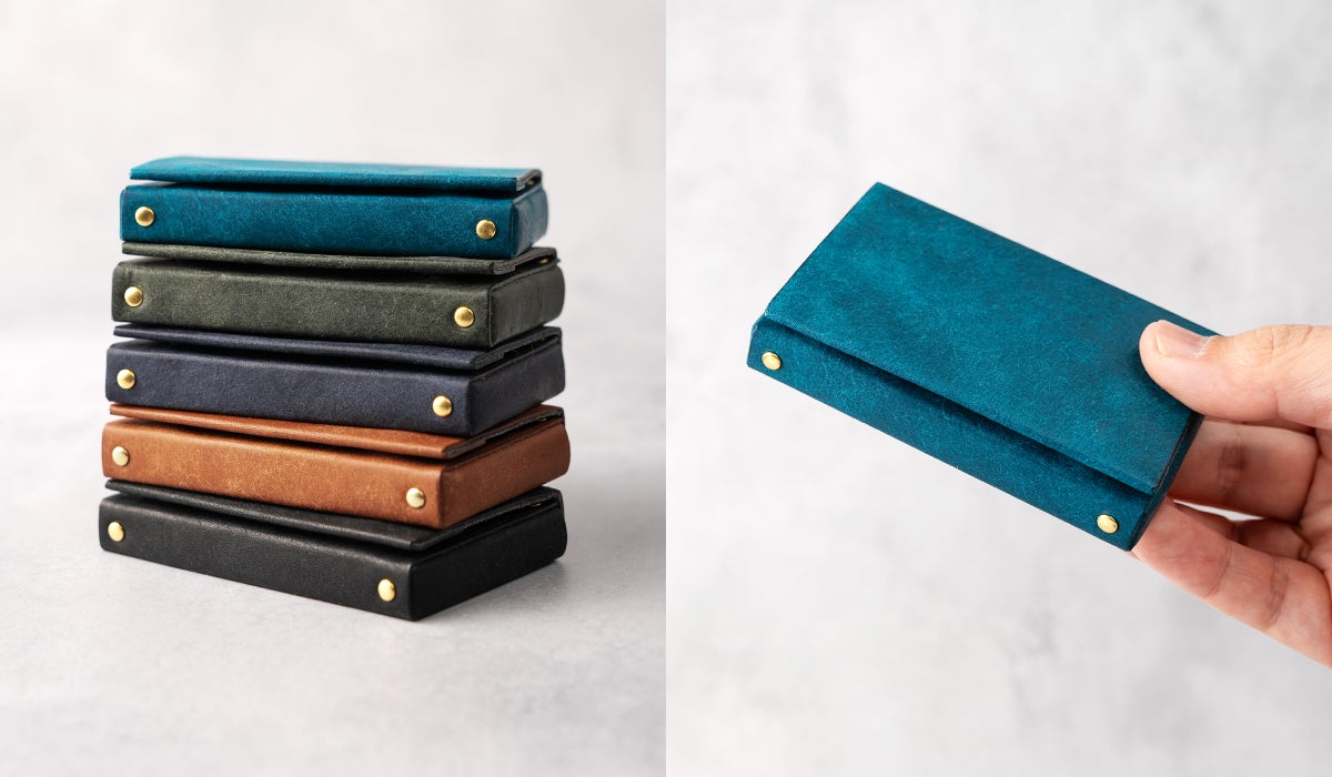 これまでの名刺入れでは革の厚みを「0.8mm」にしていましたが、革の質感をより感じていただくために革の厚みを「1mm」にしています。