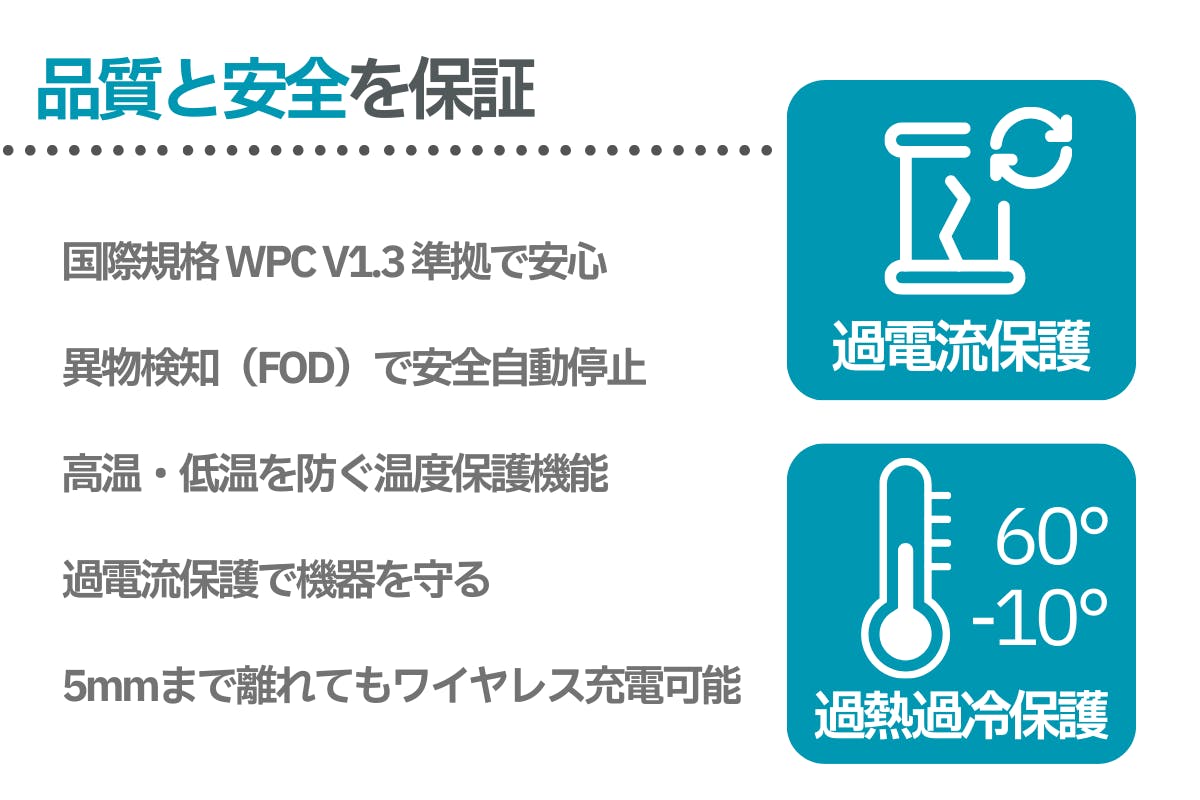 MCG-100は、撮影体験を向上させるだけでなく、安心して長く使っていただけるよう設計されています。国際規格への準拠、異物検知や温度・過電流保護といった多重の安全機能。そして厳しい品質基準をクリアしたからこそ、どんな場面でも信頼できる相棒になります。