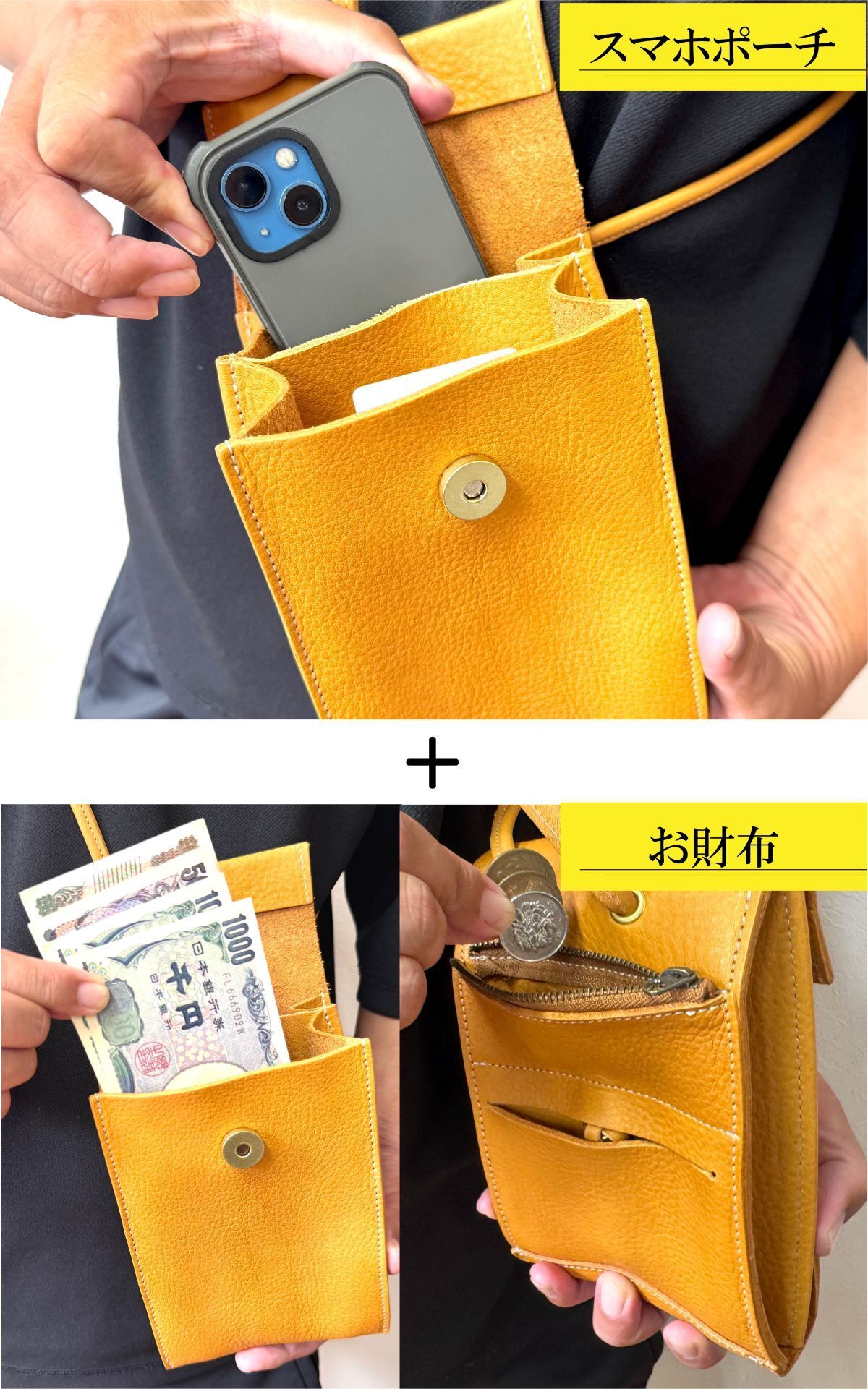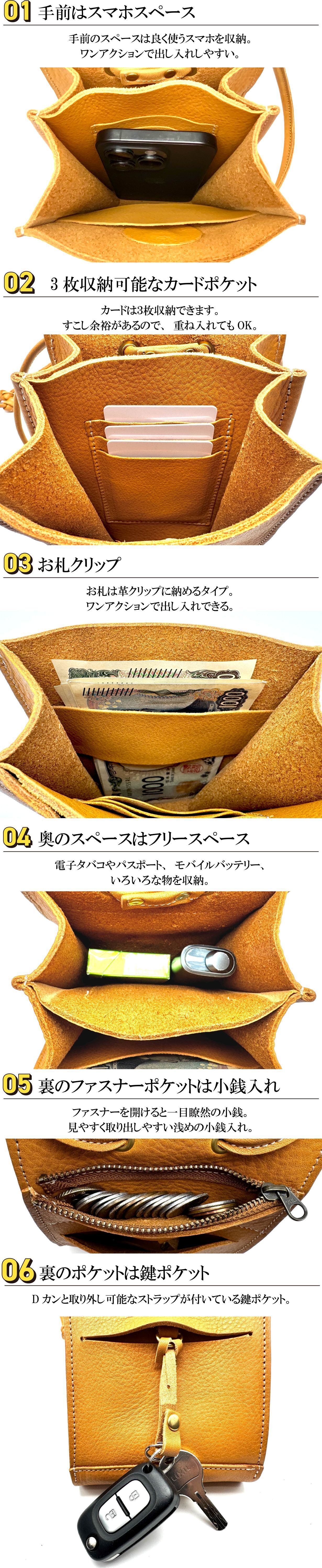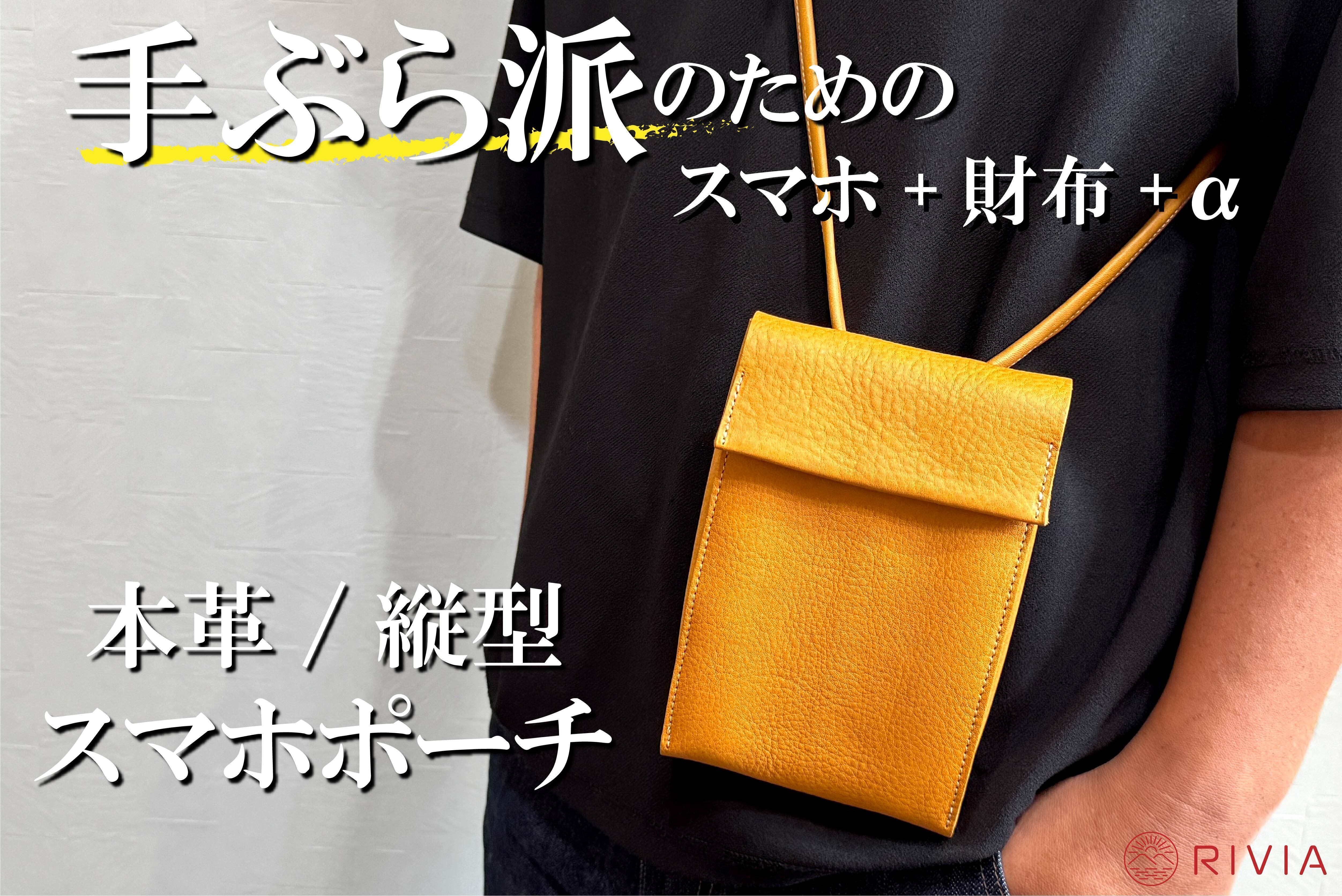 スマホ1つで多くのことを完結できるようになった現代人の荷物の少なさにマッチした本革縦型スマホポーチ。使い勝手がよく、本体も小さく、スマートにお出掛けが出来ます。