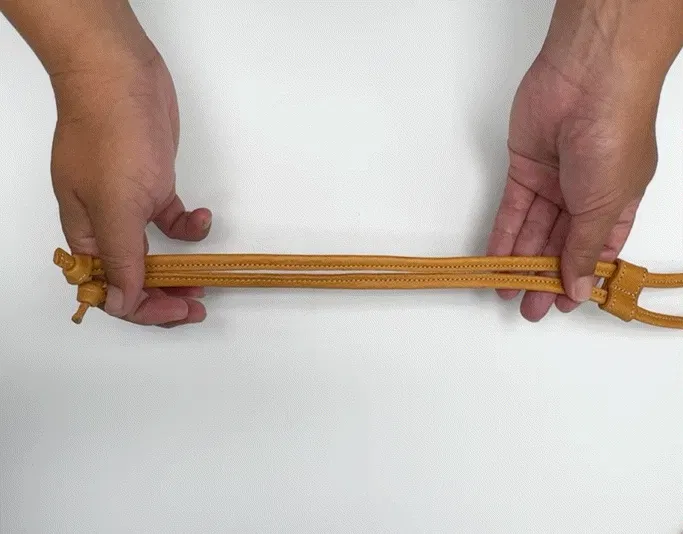 紐の調節は自身のお好みの長さでくくって調整するので、好きな場所でとどまってくれます。