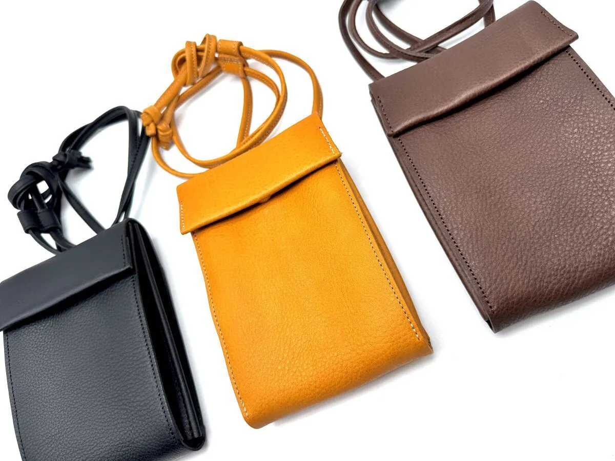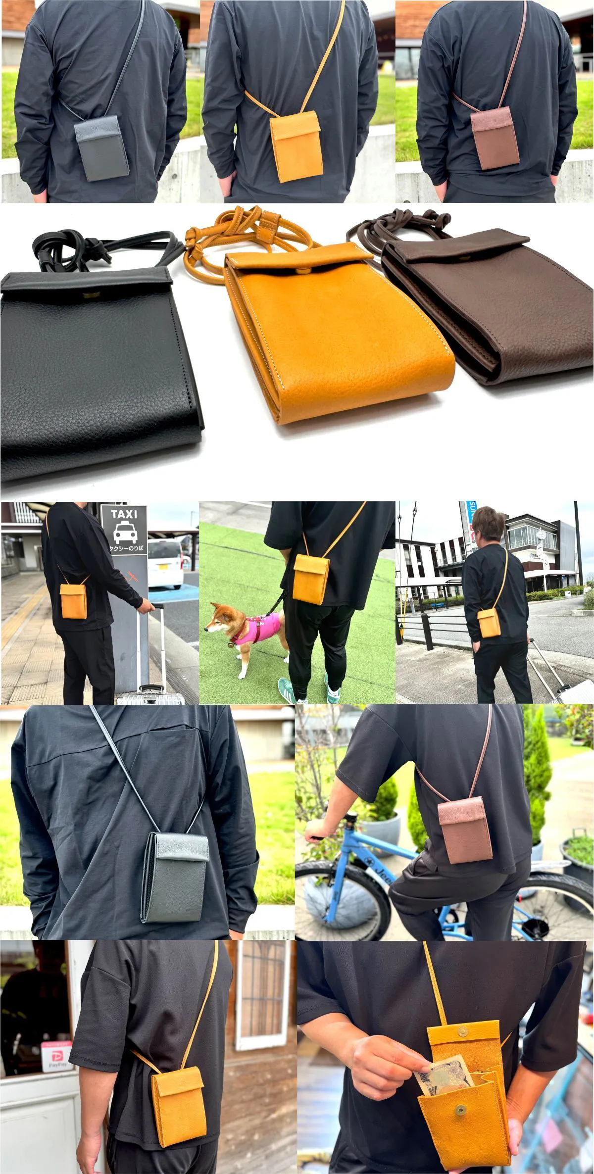スマホ1つで多くのことを完結できるようになった現代人の荷物の少なさにマッチした本革縦型スマホポーチ。使い勝手がよく、本体も小さく、スマートにお出掛けが出来ます。