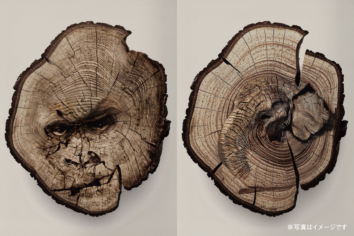 断面に、絶滅の危機に瀕した野生動物を彫ります。