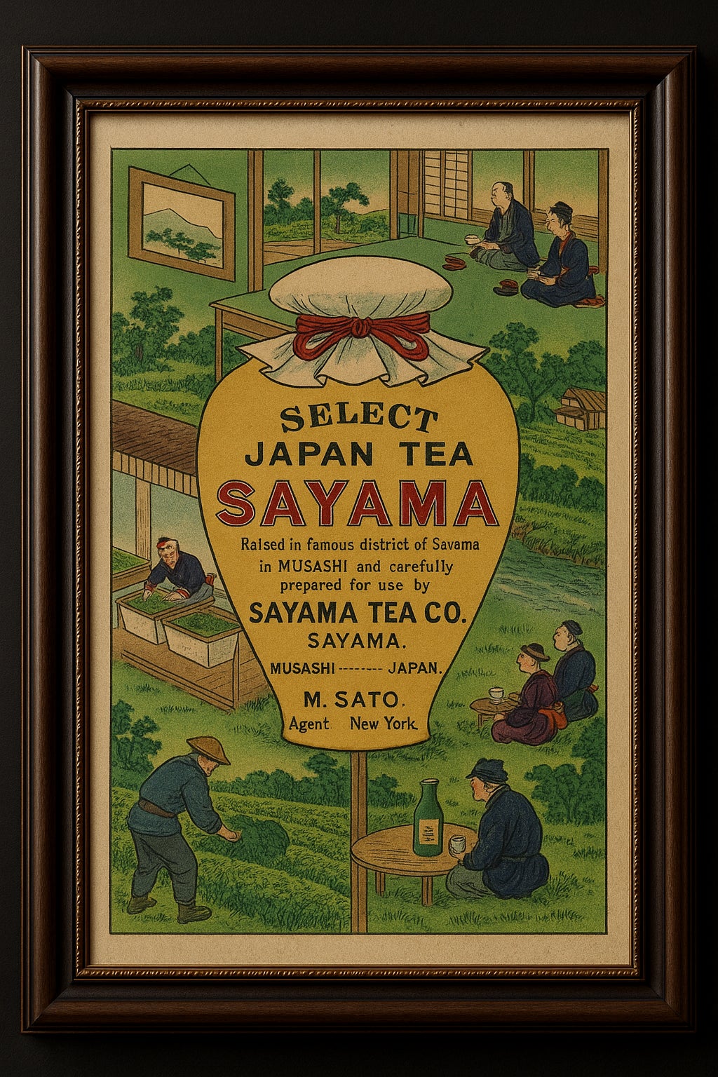 狭山会社がアメリカで販売した茶のラベルを再現しました