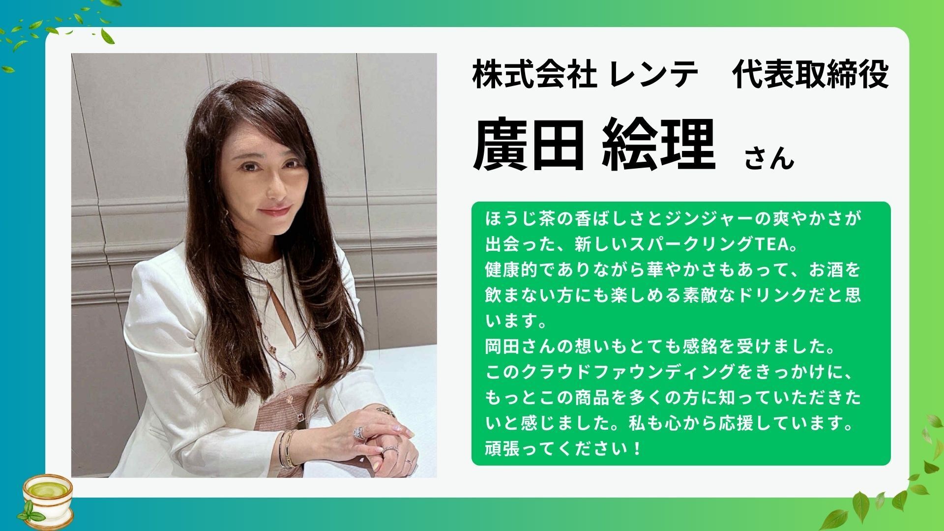 2025/12/03 00:01ご支援者の皆さまへこの度は、私たちのクラウドファンディング「【日本三大銘茶・狭山茶】伝統×新感覚スパークリングティーで世界を魅了したい!」プロジェクトにご支援いただき、誠にありがとうございます!本日、無事に目標金額を達成することができました。心より感謝申し上げます。ひとつひとつのご支援、そして“お気に入り”やシェアといった形で想いに寄り添ってくださったことが、私たちの背中を強く押してくれました。本当にありがとうございます。今回の挑戦は、「伝統あるお茶文化を新しい形で次世代につなぎたい」という願いから始まりました。そして今、皆さまのおかげで、ただ商品をつくるだけではなく、お茶文化の未来を一緒に創る一歩を踏み出すことができました。そして、ここから先の“未来”を一緒に大きくしたい実は、今回のプロジェクトにはまだ続きがあります。残された期間で集まったご支援は、スパークリングティーの品質向上や新フレーバーの開発、そしてグローバル展開への準備に活用させていただく予定です。”日本のお茶って、こんなに面白いんだ””新しい飲み方なのに、しっかりお茶を感じる”そんな驚きや感動を、日本国内だけでなく世界にも届けたい。伝統と革新の架け橋として、お茶の可能性をもっと広げたい。そのためにも、今後いただく追加のご支援は、このプロジェクトを“一過性のチャレンジ”で終わらせず、未来につながる本物の文化づくりへと進化させる大切な力になります。☆最後にお願いです☆本プロジェクトをご覧の方でご支援を検討いただいている方は、この機会によろしければお気持ちでご支援いただけますと大変ありがたく存じます。ご支援者の皆様におかれましても、周りの方へのシェアのご協力をいただけますととても嬉しいです。皆さまのお力添えが、私たちの挑戦をより大きな未来へ導いてくれます。最後まで全力で走りきることが、ご支援をくださる皆様の心意気にお応えするカタチであると考えております。残りの期間も、どうぞ温かく見守りつつ応援いただけましたら幸いです。心からの感謝を込めて。ありがとうございます。そして、これからもどうぞよろしくお願いいたします。株式会社Ensembles 代表 岡田 智史 もっと見る