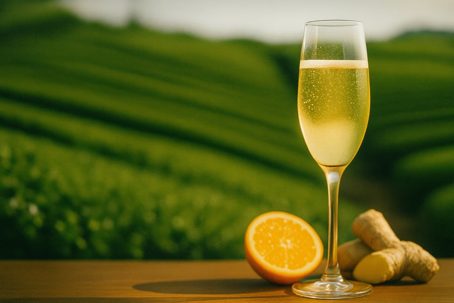 焙じ茶の芳ばしさをベースに、オレンジの爽やかな酸味、カモミールのやさしい甘み、ジンジャーの軽やかなスパイスが織りなす新感覚スパークリングティー。