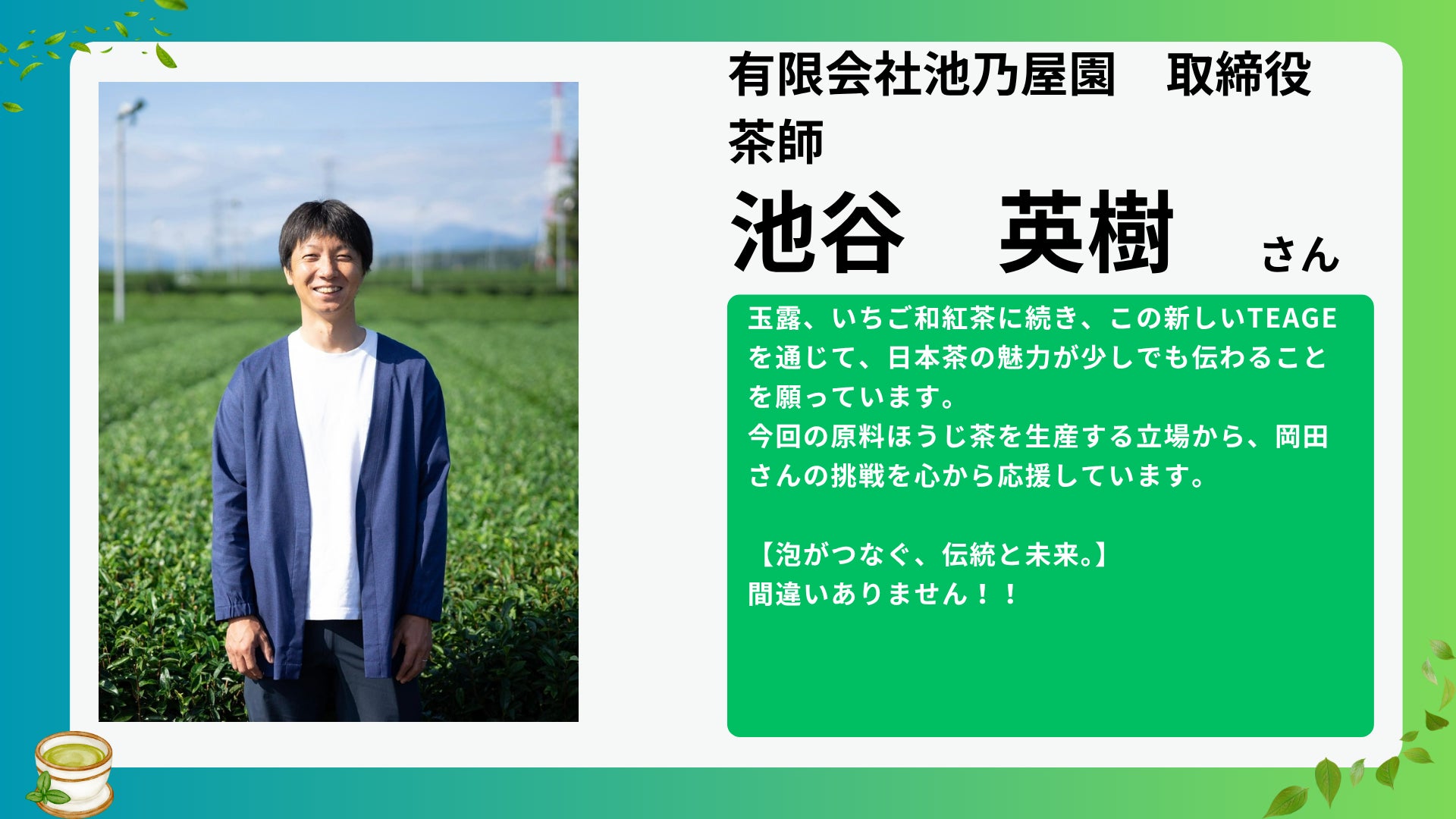 Teage= 日本茶を楽しむだけでなく、日本茶の未来を共に育てる一杯。