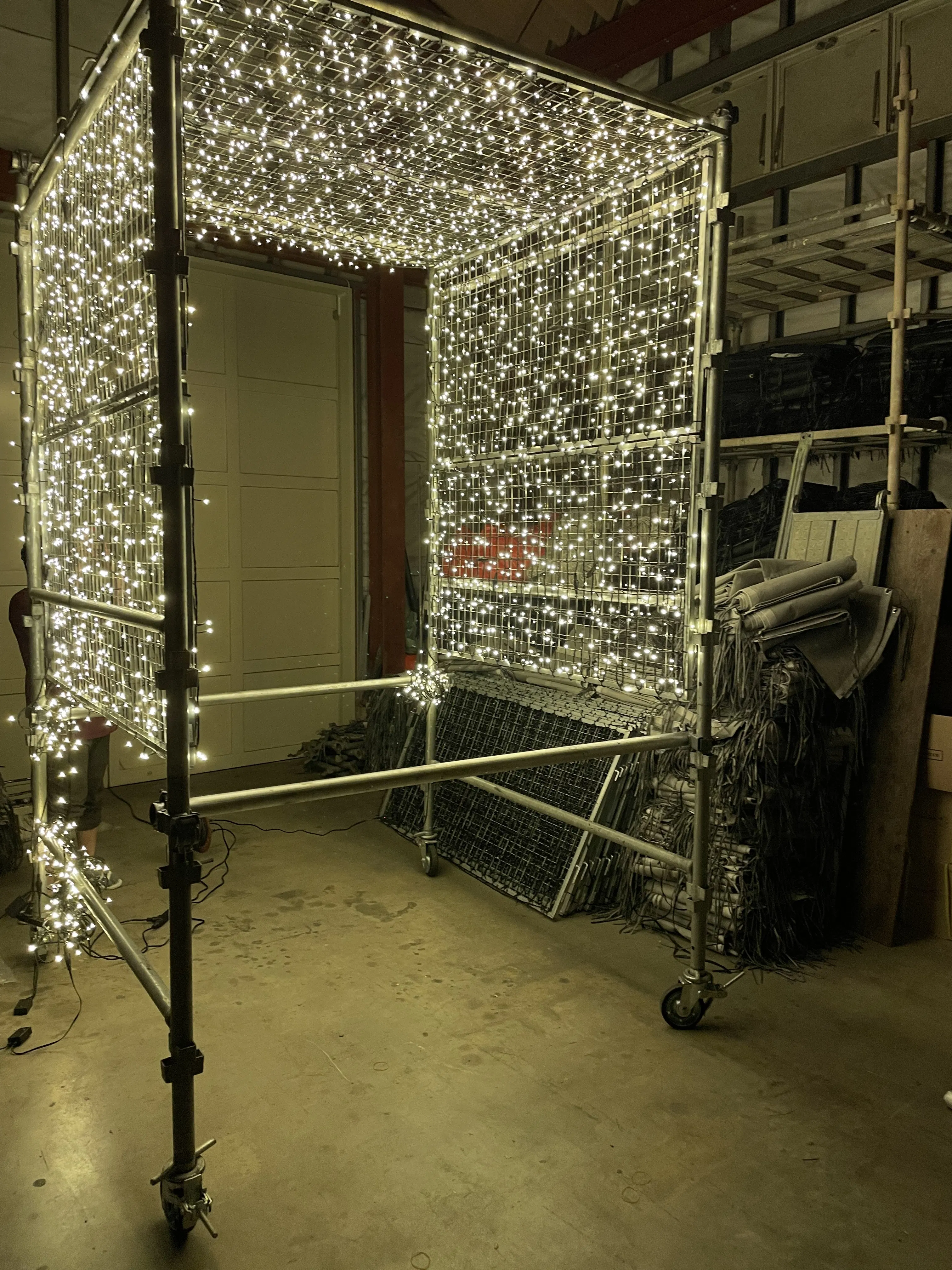 試作中の光のトンネル。高さも幅も去年の倍近くになります。