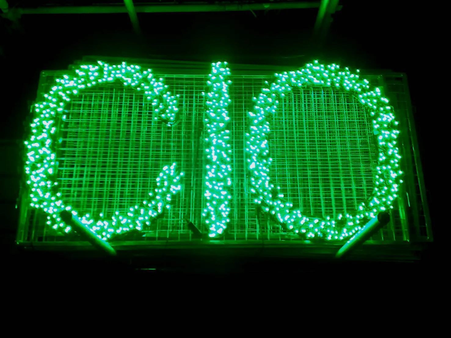 試作中のCHOSHI看板。イルミネーション会場内の大きなソテツの木の前に設置予定です。