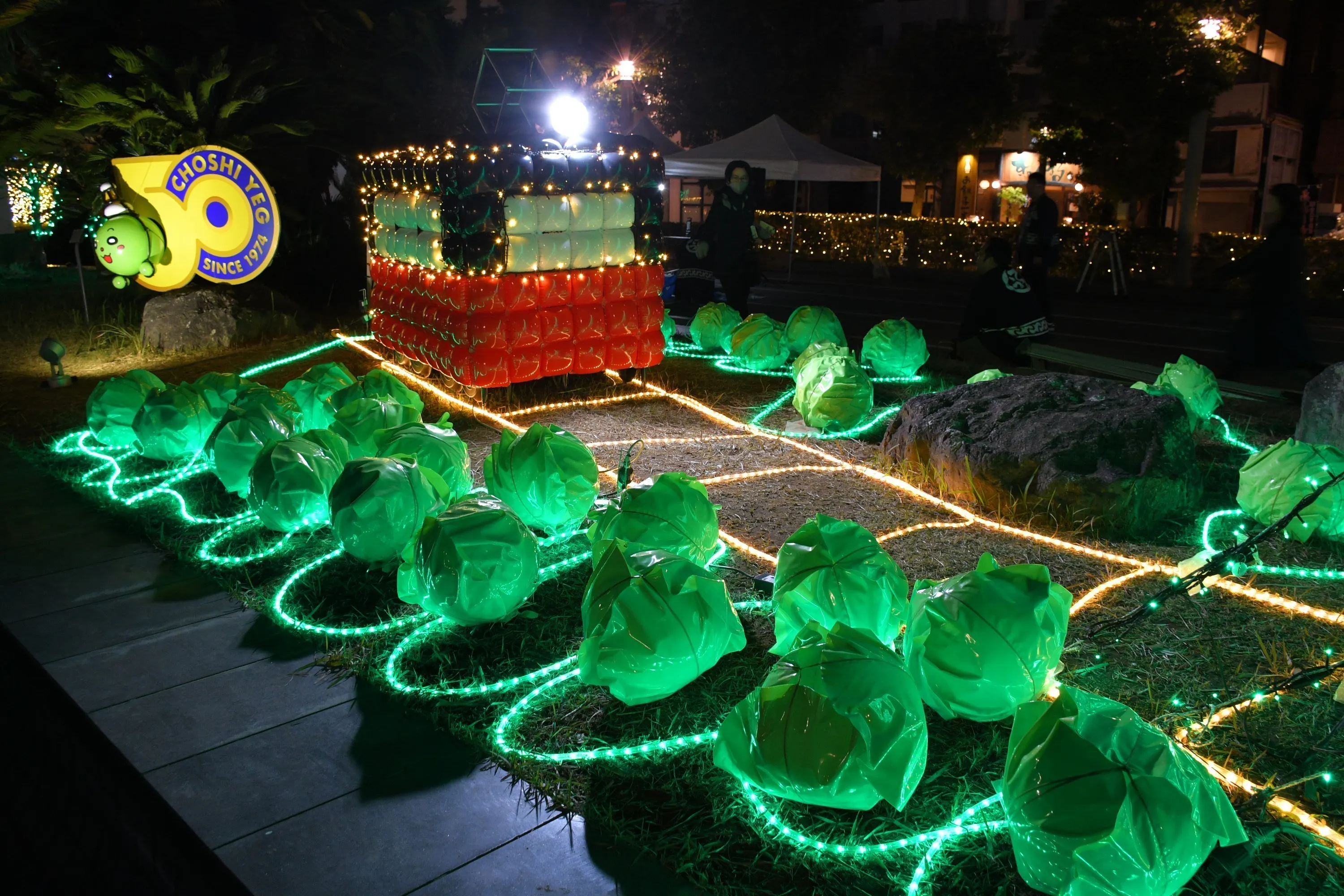 ②イルミで輝くCHOSHI文字オブジェを作成 ~ 今回のイルミネーション事業の象徴としてCHOSHIの文字が光り輝く特別なオブジェを新たに設置。恋人や友人、家族と過ごす時間が特別な思い出になるオブジェにします。