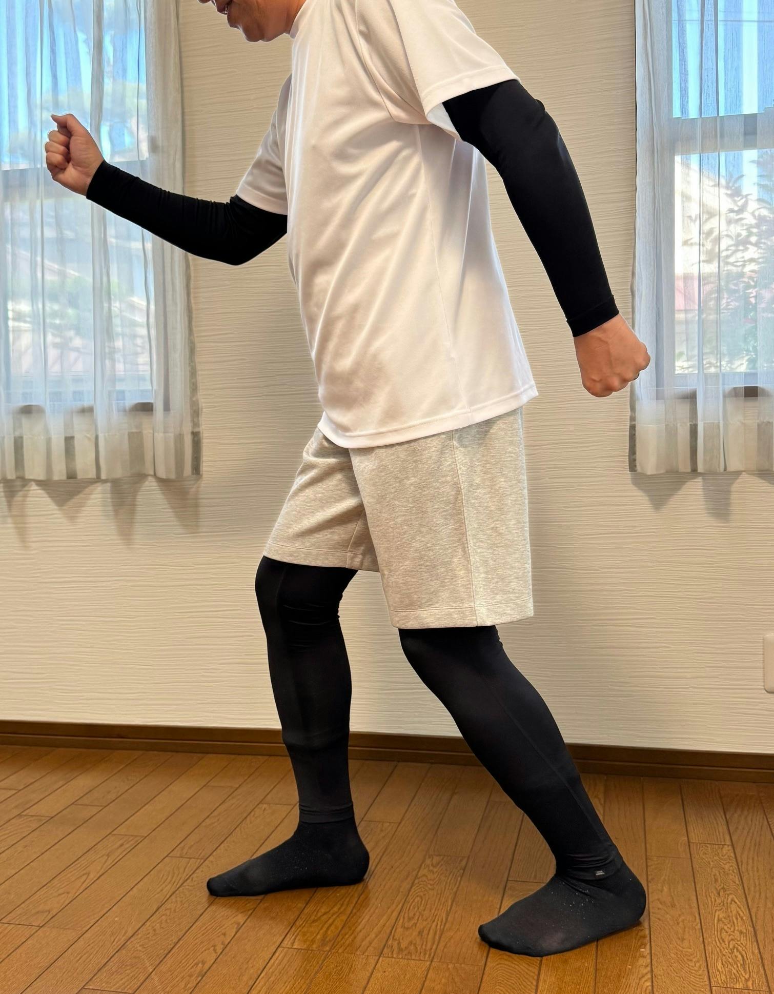 インナーウエアとして着ています。その上にTシャツと短パンをはいています。