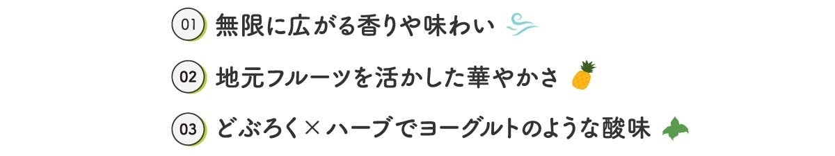 沖縄の太陽と土が育てた素材が、グラスの中で新しい物語を紡ぎ、遠い国の誰かの心に届く。