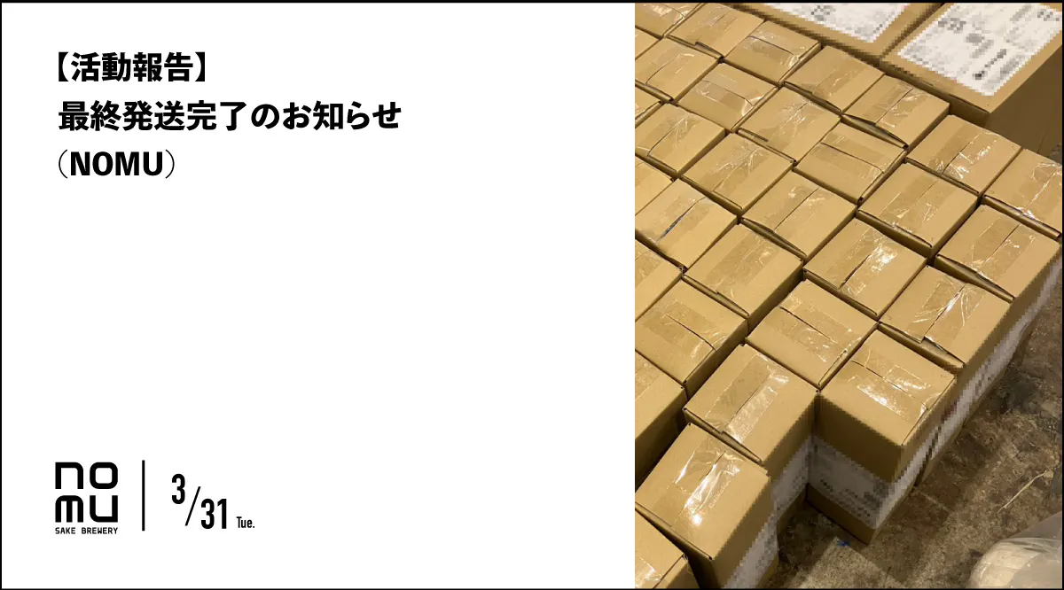 【活動報告】最終リターン発送完了のお知らせ|3/30発送分(NOMU)