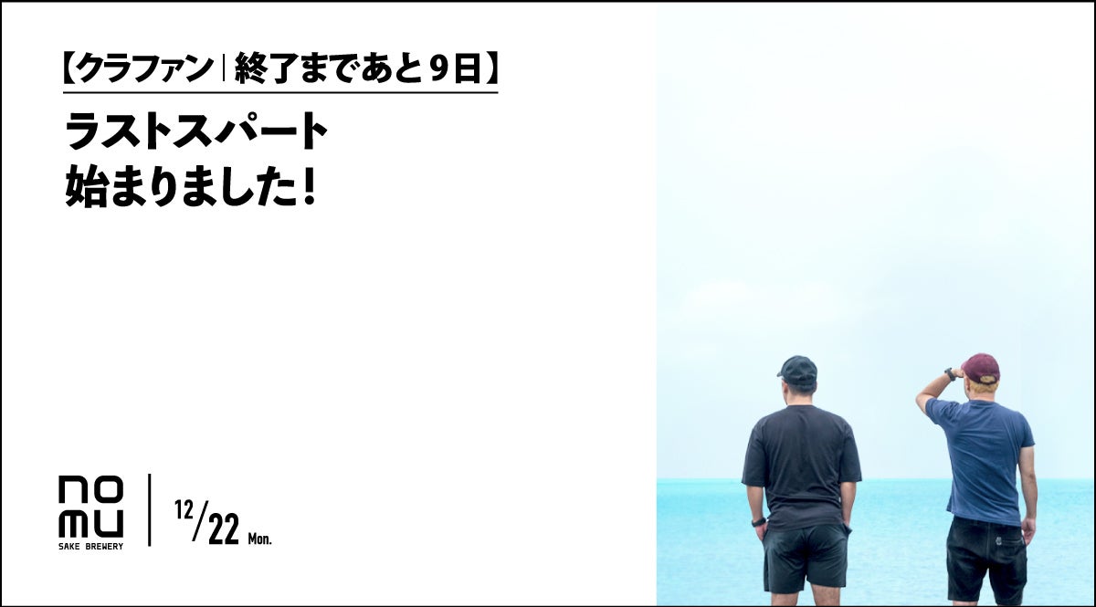 【活動報告|終了まであと6日】応援メッセージのご紹介━━━━━━━━━━━━━━━━━━クラウドファンディングの終了まで、残り6日となりました。本日は、これまでに支援者の皆さまから届いている応援メッセージの一部をご紹介させていただきます。⸻プロジェクトを進める中で、皆さまからいただく言葉一つひとつがNOMU醸造所にとって大きな励みになっています。「想いに共感しました」「完成を楽しみにしています」「沖縄のお酒を応援したい」そんな声を受け取りながら、私たちは日々、酒造りに向き合っています。⸻⸻改めて、ご支援・あたたかいメッセージをお寄せくださった皆さま、本当にありがとうございます。━━━━━━━━━━━━━━━━━━もしよろしければ、身近な方へのシェアやSNSでのご紹介も、とても大きな力になります。▼ シェア用の文章(コピーしてご使用いただけます)============================沖縄初のクラフト酒づくりに挑戦している「NOMU醸造所」のクラウドファンディングを応援しています。よければ、ページだけでも覗いてみてもらえると嬉しいです。▼プロジェクトページhttps://camp-fire.jp/projects/874876/view============================クラウドファンディングは、12月31日まで。残りわずかな期間となりましたが、最後まで、どうぞよろしくお願いいたします。━━━━━━━━━━━━━━━━━━