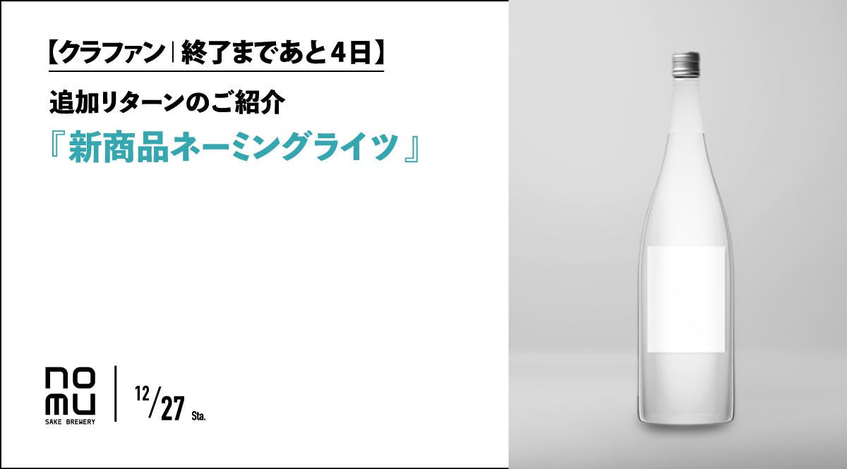 2025/12/27 12:00【活動報告|終了まであと4日】追加リターンのご紹介『新商品ネーミングライツ』━━━━━━━━━━━━━━━━━━今回は、NOMU醸造所の“新しいお酒”に名前をつけていただく特別なリターンをご紹介します。このリターンでは、ただお酒を受け取るのではなく、これから生まれるお酒に「どんな名前をつけるのか」その最初の一歩から関わっていただけます。ネーミングは、NOMU醸造所のメンバーと一緒に話し合いながら決定。味わいや想い、背景を共有しながら、ひとつの名前を形にしていきます。完成したお酒は、今後“定番商品”として販売されていく予定です。このリターンは、お酒を飲むだけでなく、その誕生に関わることができる体験となります。「つくる側」として関われる、このプロジェクトならではの特別なリターンです。━━━━━━━━━━━━━━━━━━■ 新リターン内容・新商品のネーミング参加権・NOMU醸造所との打ち合わせ・完成したお酒(500ml × 24本)のお届け━━━━━━━━━━━━━━━━━━▼詳細は、クラウドファンディングのページをご覧ください『島のお米が世界を旅する日を夢見て。』━━━━━━━━━━━━━━━━━━もしよろしければ、身近な方へのシェアやSNSでのご紹介も、とても大きな力になります。▼ シェア用の文章(コピーしてご使用いただけます)============================沖縄初のクラフト酒づくりに挑戦している「NOMU醸造所」のクラウドファンディングを応援しています。よければ、ページだけでも覗いてみてもらえると嬉しいです。▼プロジェクトページhttps://camp-fire.jp/projects/874876/view============================クラウドファンディングは、12月31日まで。残りわずかな期間となりましたが、最後まで、どうぞよろしくお願いいたします。━━━━━━━━━━━━━━━━━━【次回予告】次回は、もう一つの追加リターン「酒造り体験」についてご紹介します。 もっと見る