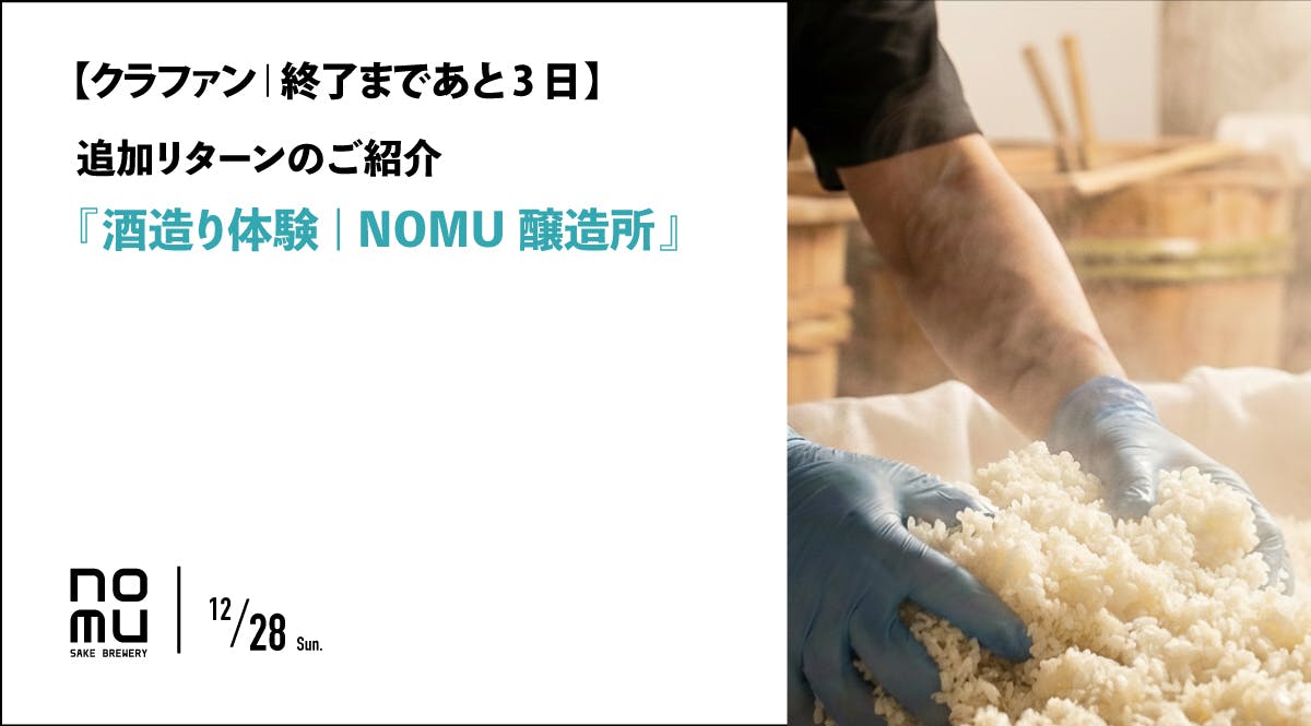 【活動報告|終了まであと3日】追加リターンのご紹介『酒づくり体験 | NOMU醸造所』