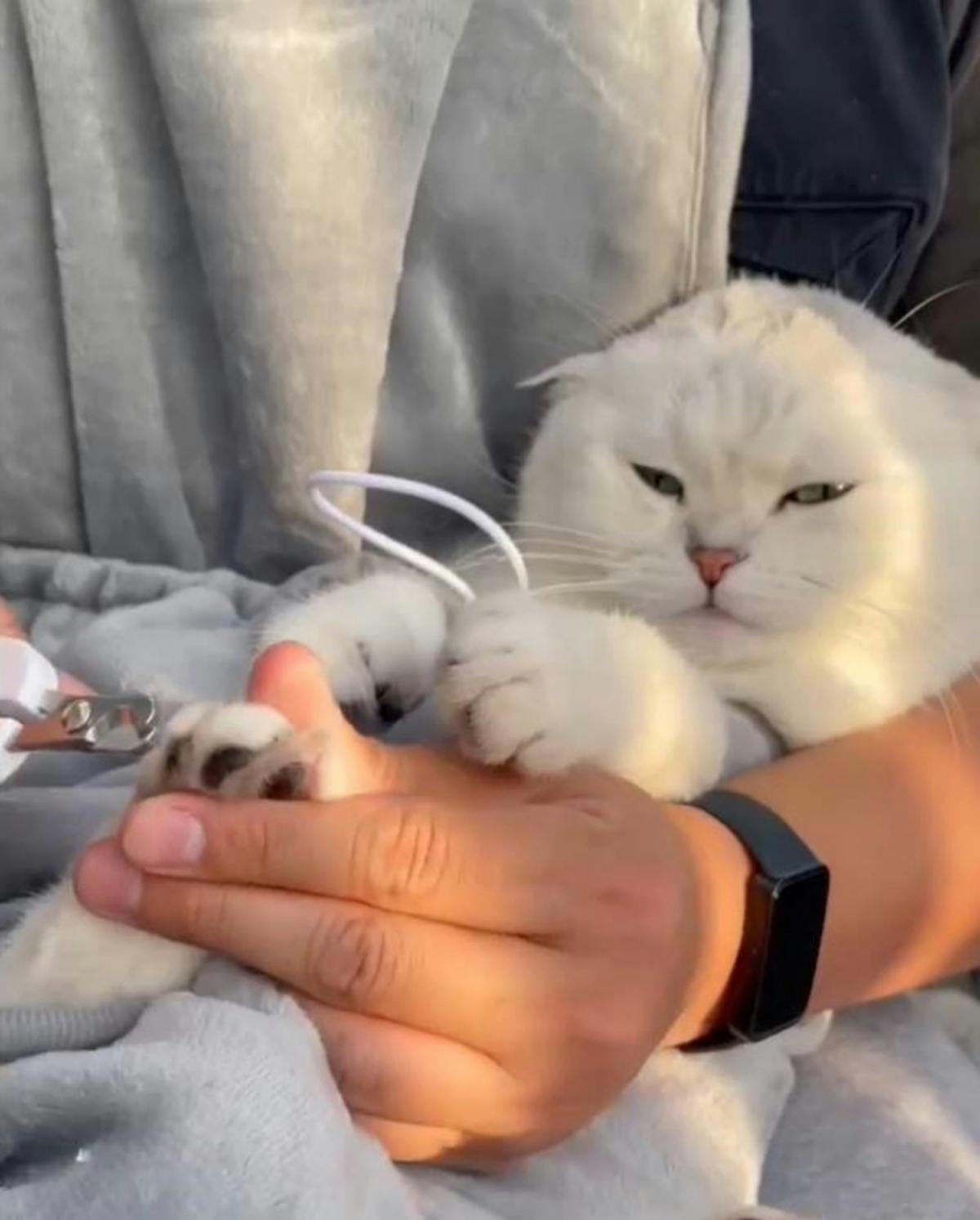 猫ちゃんを強く押さえたり固定したりする必要はありません。1人でほとんどのケア作業を効率的に行うことができます。
