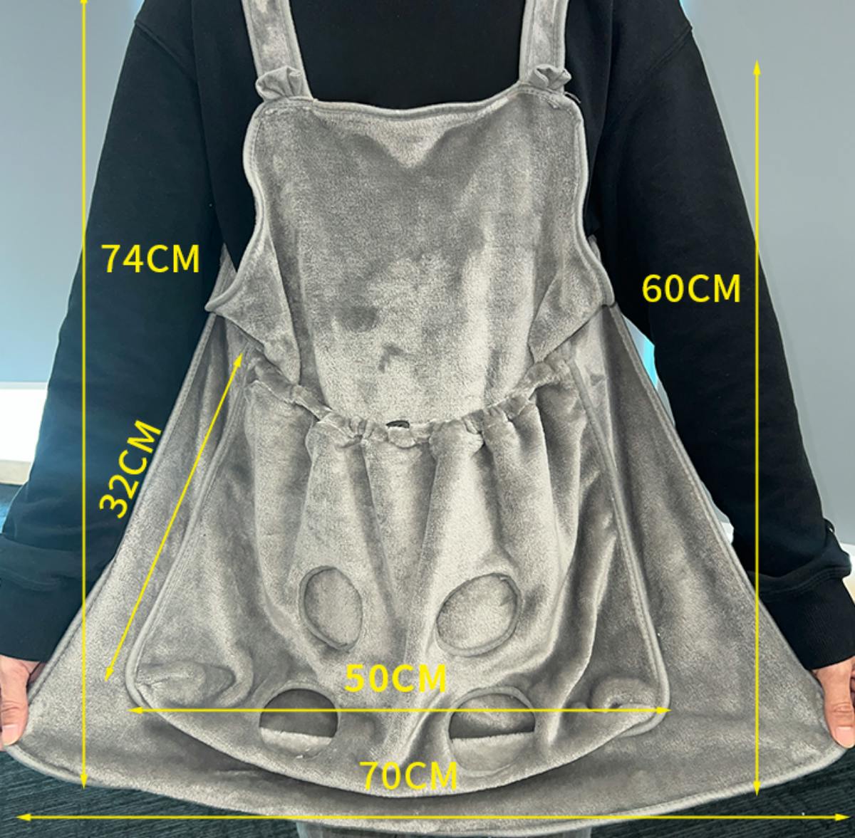 ペットの毛がセーターや洋服などに付くことに困る方も多いでしょう?このブランケットエプロンなら、毛がつく心配もなく、楽にペットを抱くことができます。