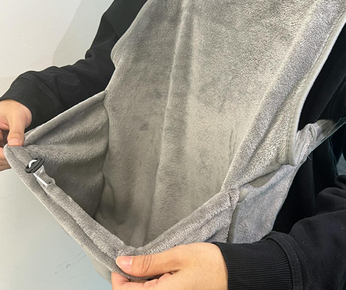 ポケットに調整できる紐がついて、入口の大きさを調整できてペットの飛び出しを防止できます。