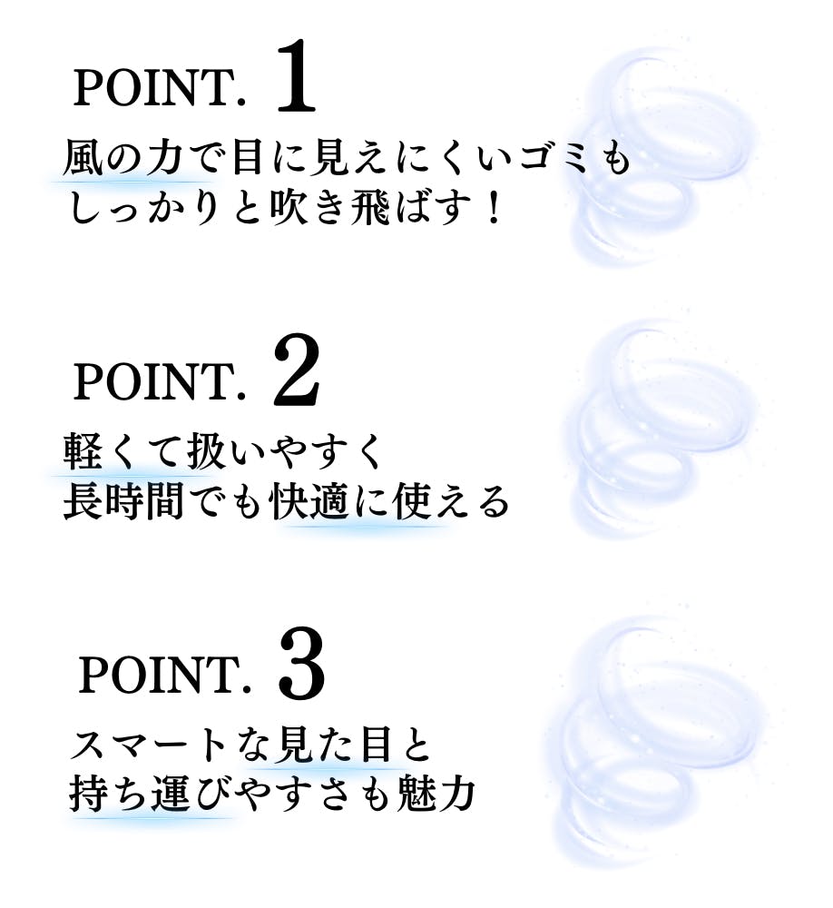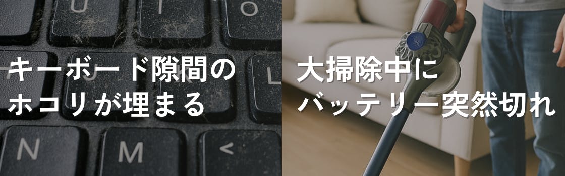 日々使うPCまわりには、思いのほかホコリが溜まっています。キーボードの隙間やモニター裏、PCファンやUSBポートまわり――見えないホコリが“熱トラブル”や“動作不良”を招く前に、ワンタッチで吹き飛ばしましょう。在宅ワークの合間でも、コンセント不要&ノズル着脱1秒の本機なら、すぐに対応可能です。
