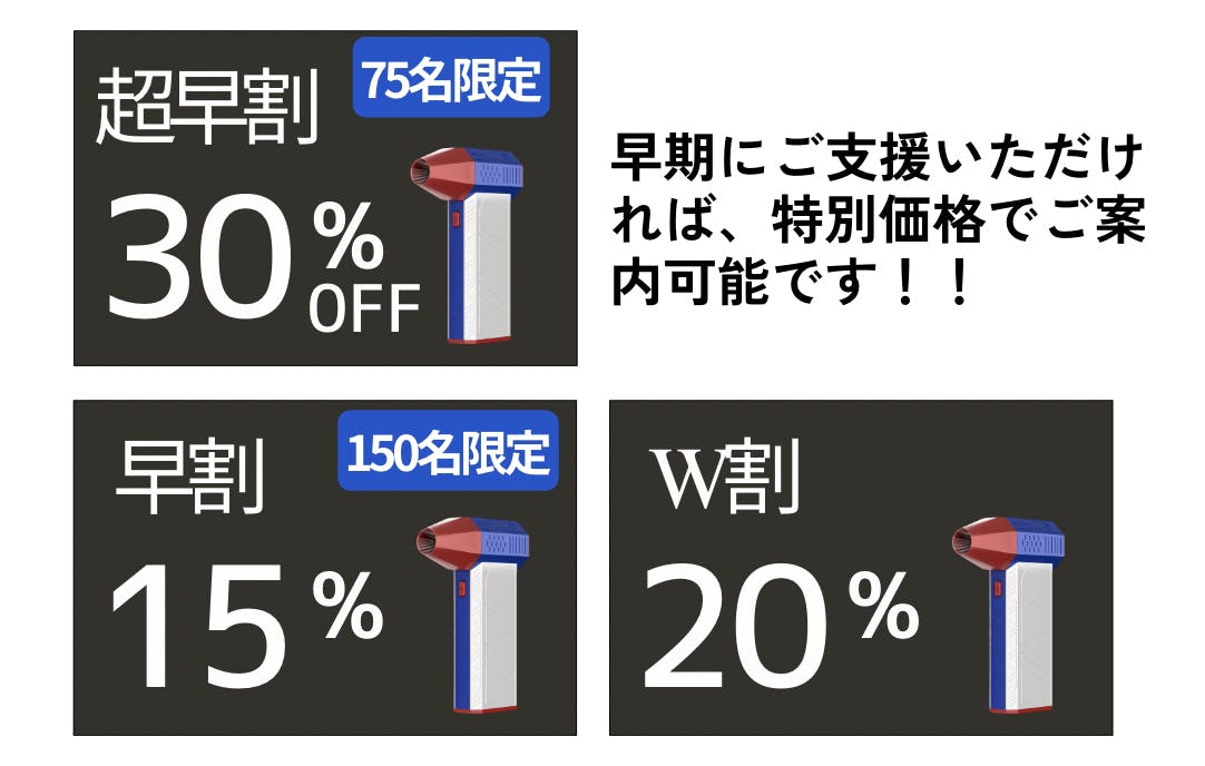 本プロジェクトでは、弊社特別企画として、製品に1年間の保証をお付けしています。