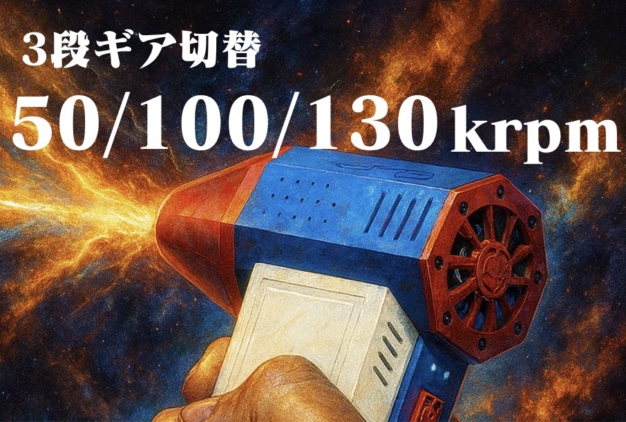 3 段ギア切替 ― 30 k / 80 k / 130 k rpm
