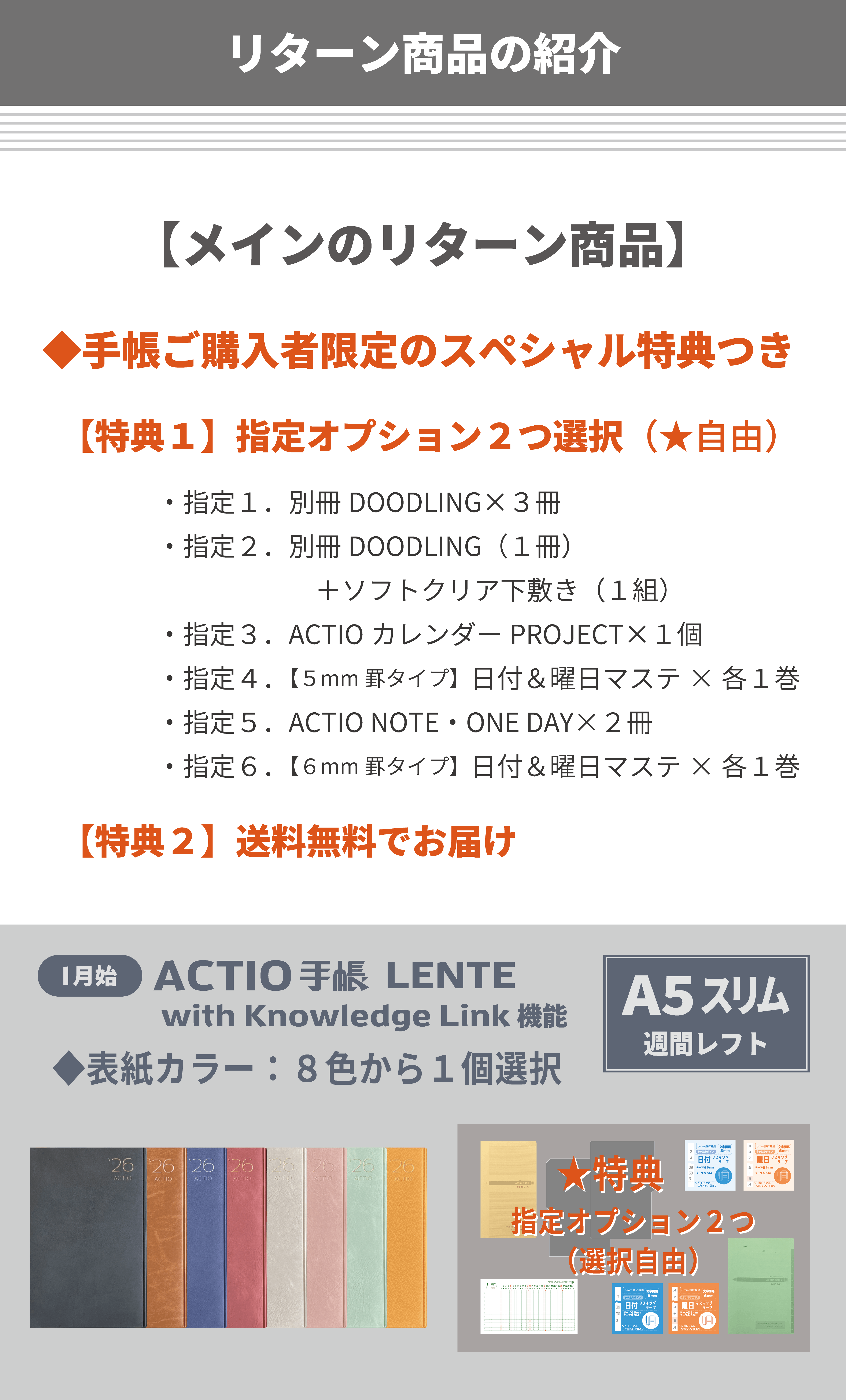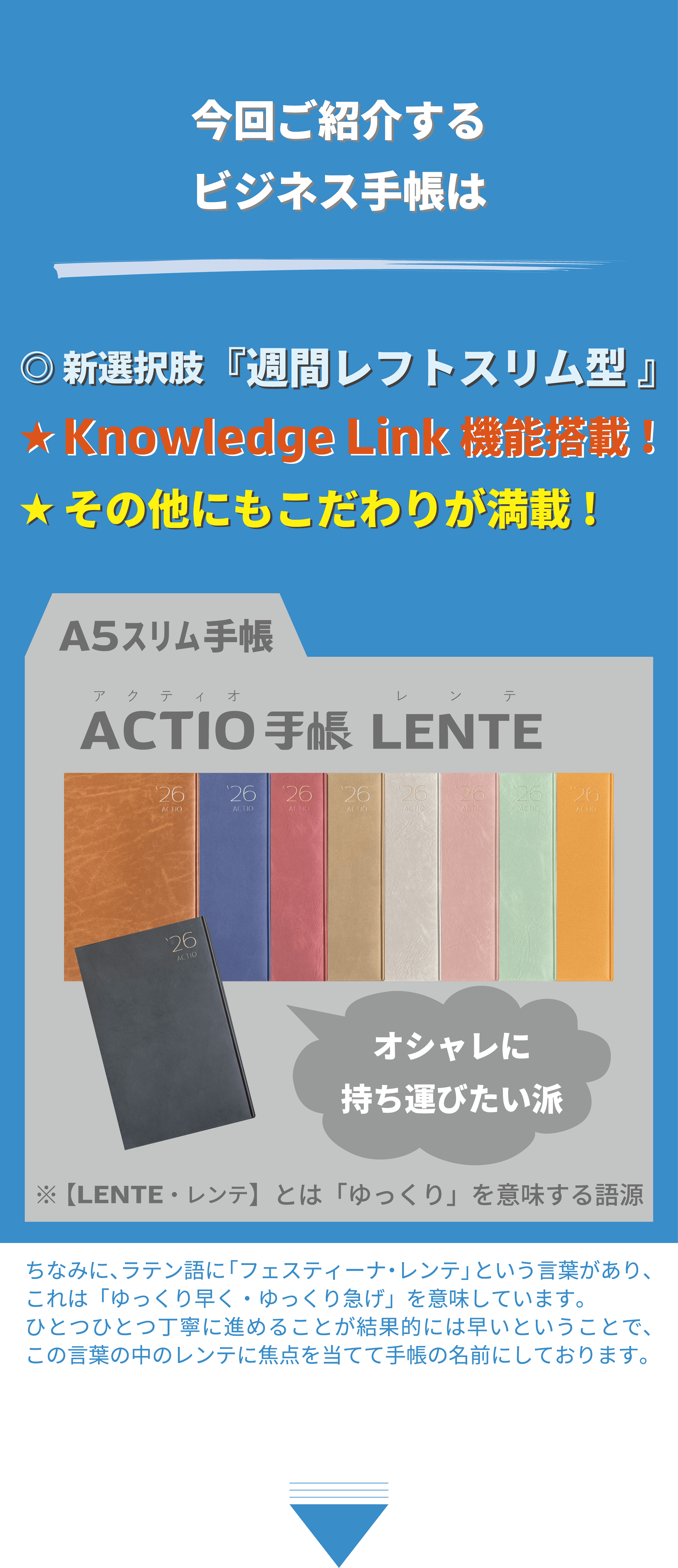 この度は、「ACTIO手帳 LENTE」のご説明を最後までご覧いただきまして、誠にありがとうございます。