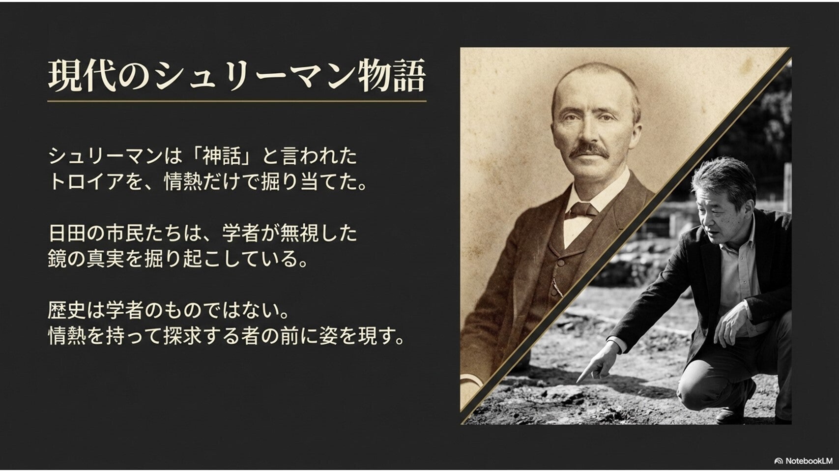 私たちも今、同じ場所に立っています。もし本当にこの鏡が卑弥呼のものだったなら──それは日本史を根底から揺るがす発見になります。