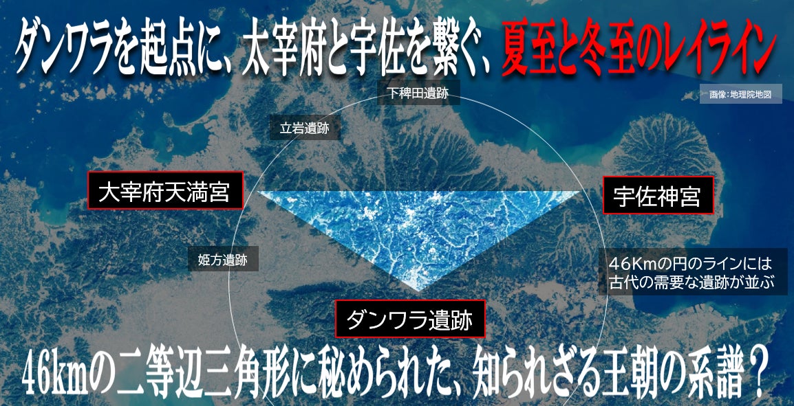 なぜ曹操の鏡と同型の鏡が、九州の山あいの日田で発見されたのか?──なぜダンワラ遺跡を起点に、太宰府天満宮と宇佐神宮が夏至・冬至の太陽の方角に沿って、約46kmの美しい二等辺三角形を描くのか?──これは偶然か、それとも古代人による壮大な「設計図」なのか?