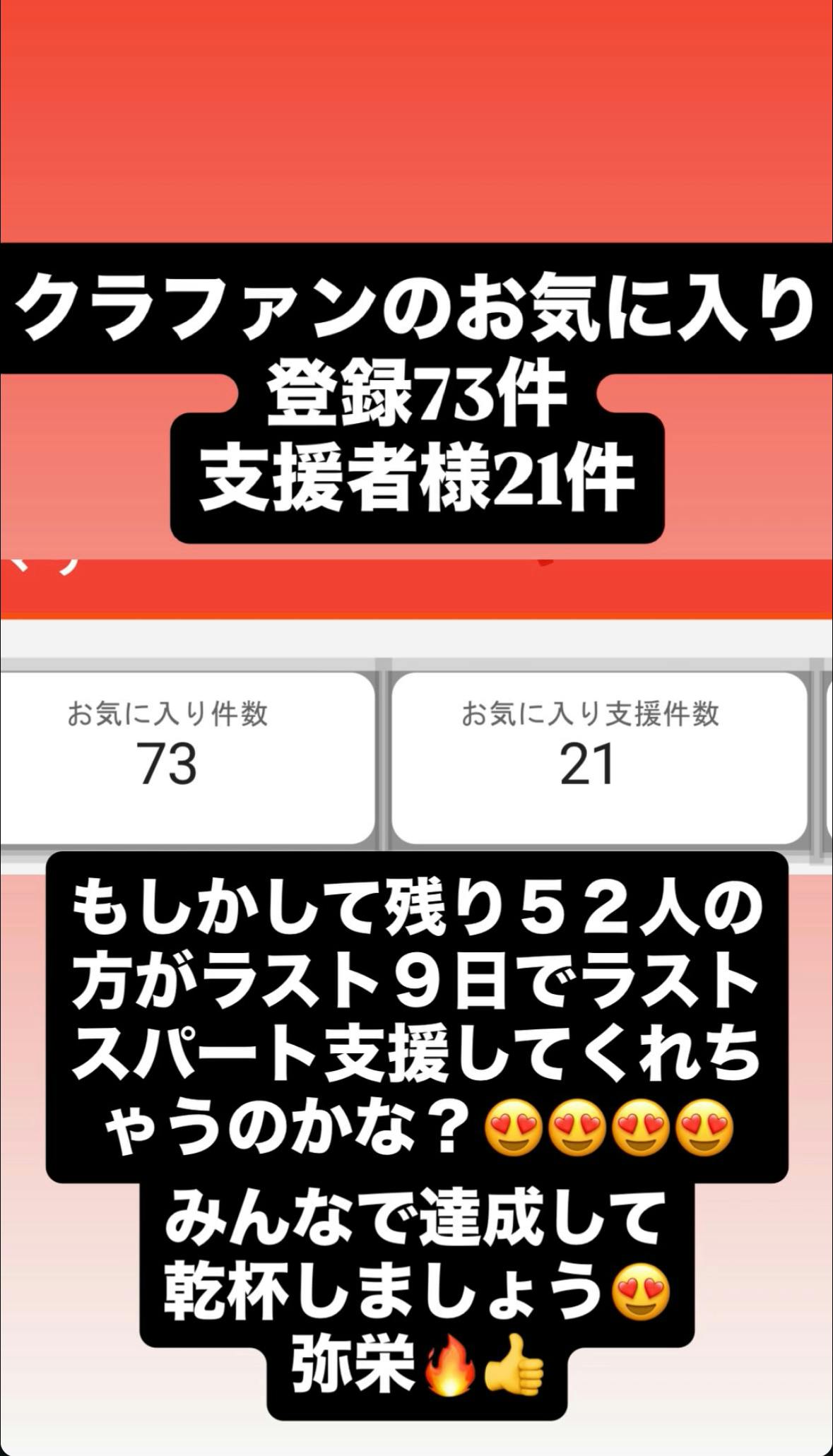 お気に入り登録してくれてる皆さんラストスパートに力を貸してください!宜しくお願い致します!
