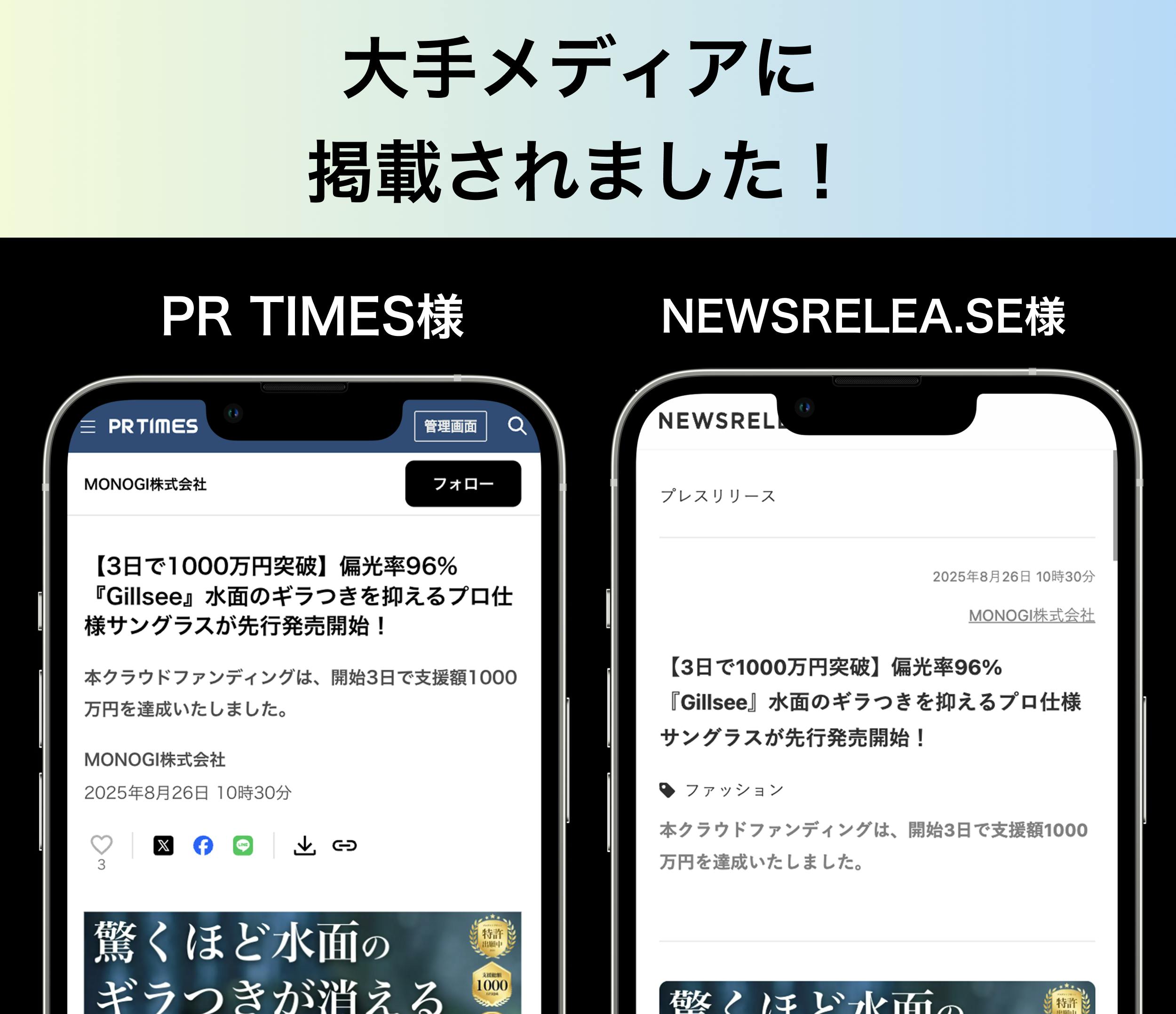 この度、Gillsee偏光サングラスが、PR TIMESおよびNEWSRELEA.SEに紹介されました!大きな注目の中、公式情報ページとしての信頼をいただき、大変励みになります。