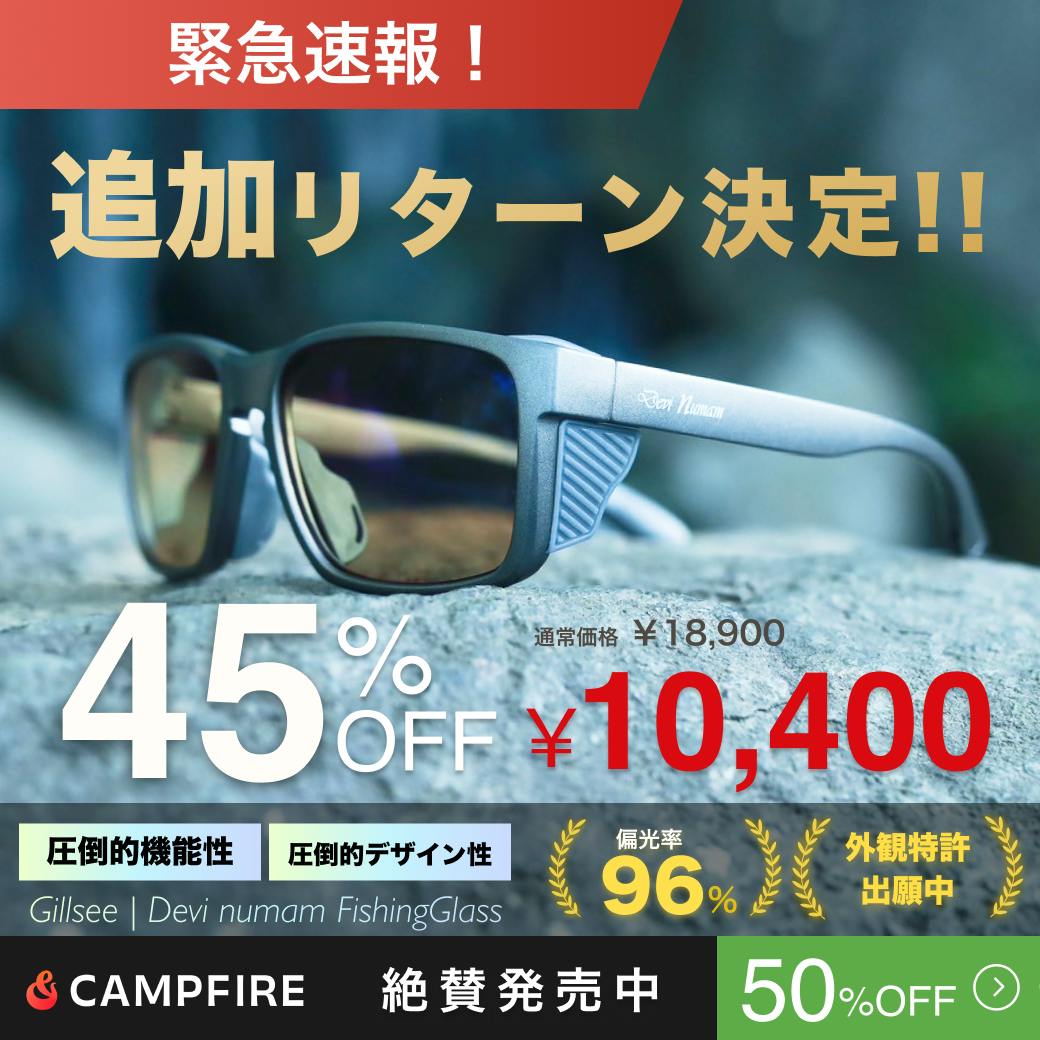 驚くほど水面のギラつきが消える《Gillsee 偏光サングラス》につきまして、皆さまからの大変多くのご反響をいただき、当初ご用意していたリターンが残りわずかとなりました。そのため、急遽、数量限定ではございますが追加リターンを設定させていただきました。