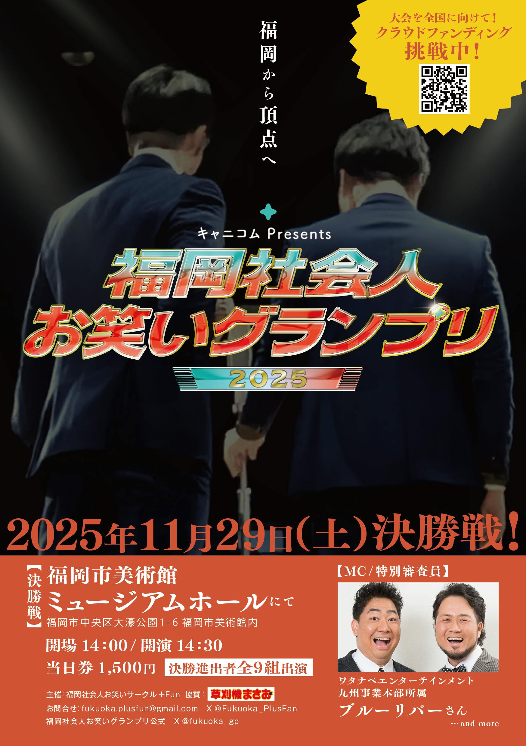 今回のご支援は、2025年11月29日開催「福岡社会人お笑いグランプリ2025」の運営・広報・安全対策等に活用させていただきます。