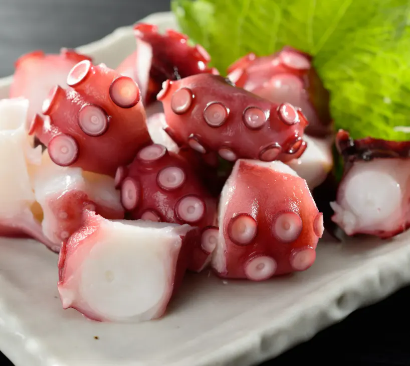 使用するタコは、旨味を最大限に引き出すために、専門の加工工場で、1匹ごと丁寧に手切りをし、ブランチング加工をして急速冷凍することで、ぷりっぷりの食感を実現しています。