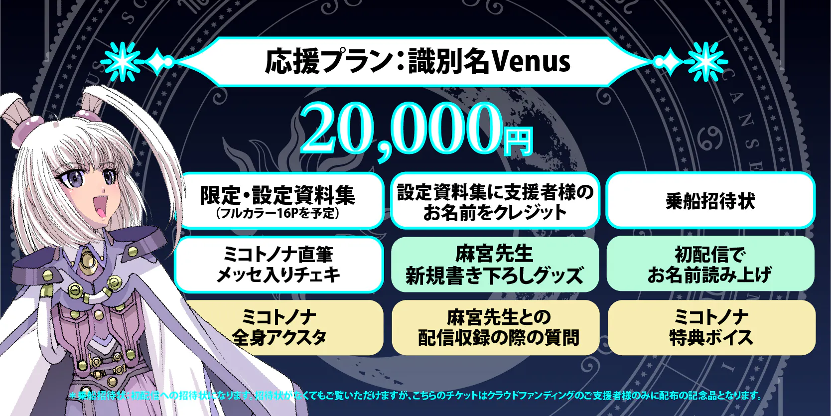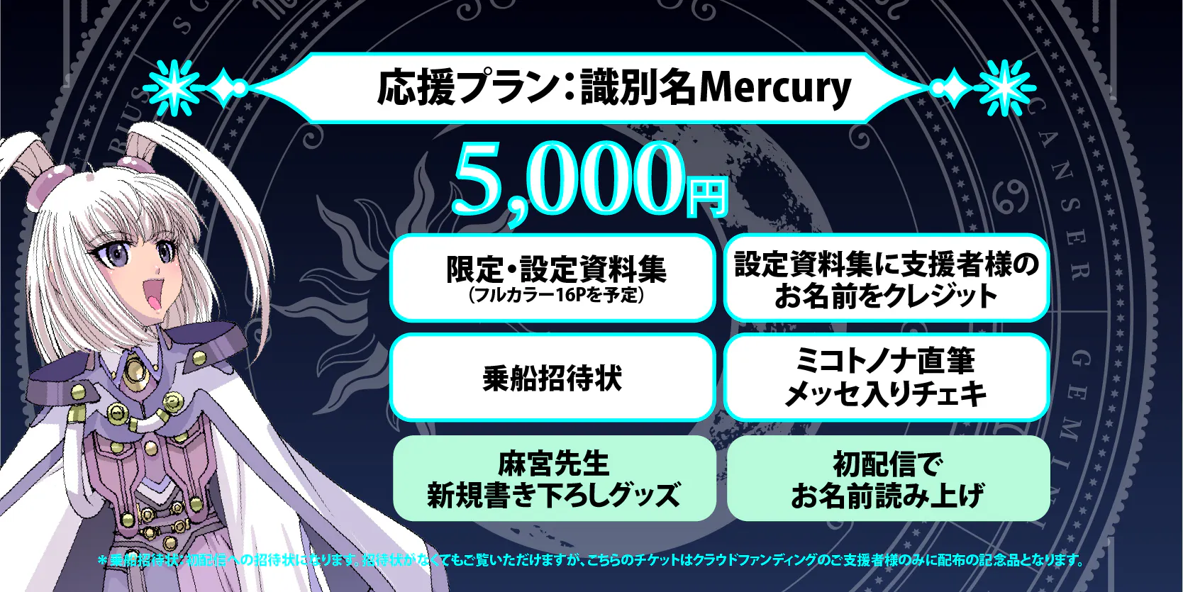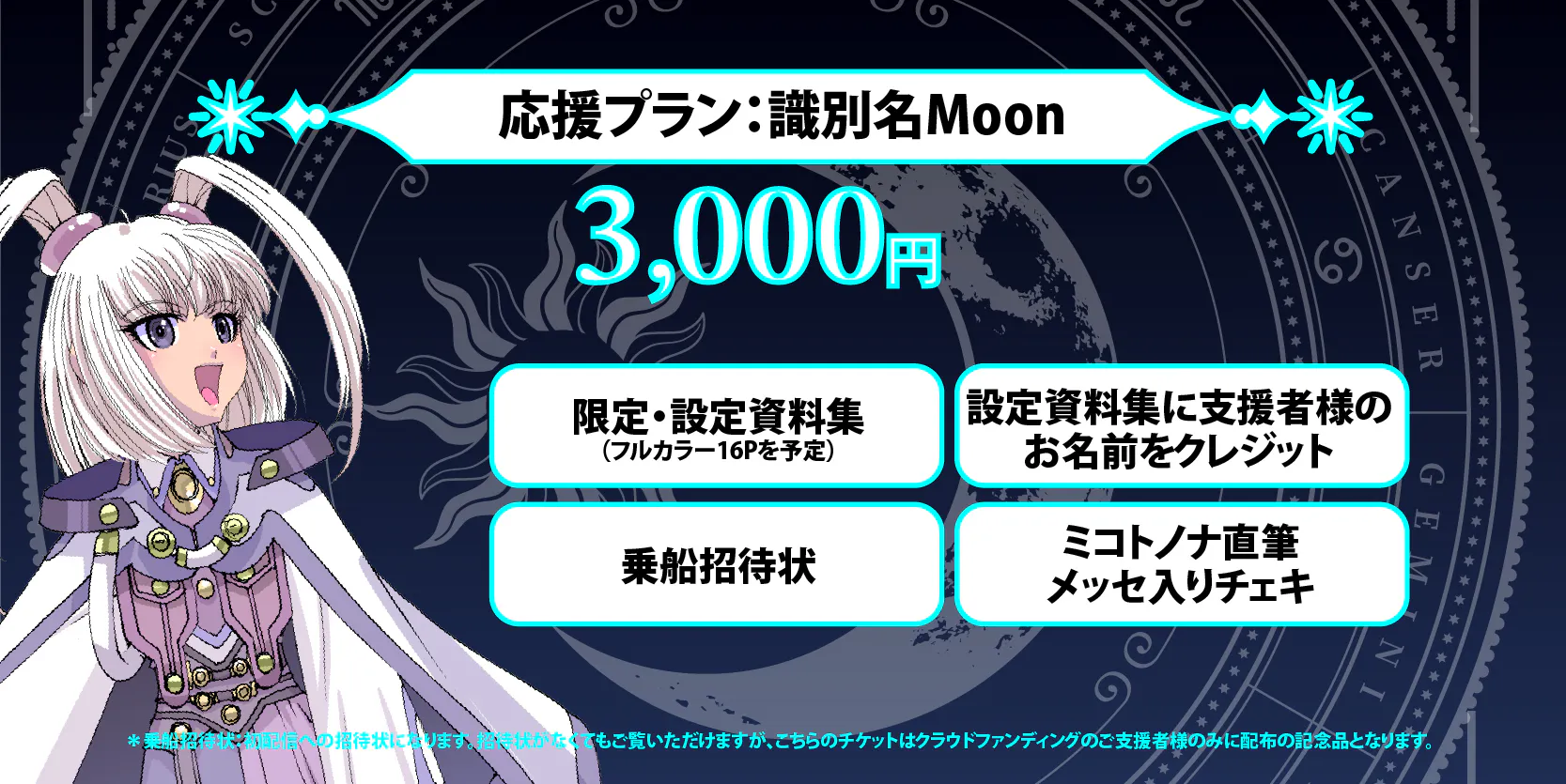 *乗船招待状:初配信への招待状になります。招待状がなくてもご覧いただけますが、こちらのチケットはクラウドファンディングのご支援者様のみに配布の記念品となります。