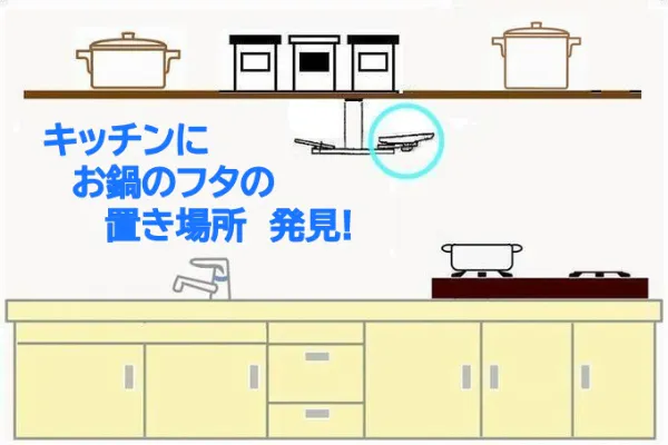 一般的に蓋の置き場所は、流し台上の調理スペースか、主に背中の方にあるテーブルの上のどちらかになりますね。流し台上の調理スペースは食材が置いてありますのでスペースが足りません。私の場合は迷った末に、背中の方にあるテーブルの上に裏返して置いていました。
