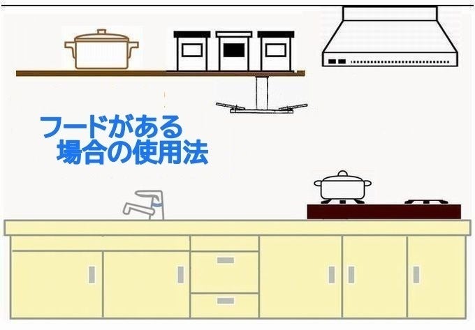 ・使用方法:キッチン調理スペース上部に付属ビスで止める