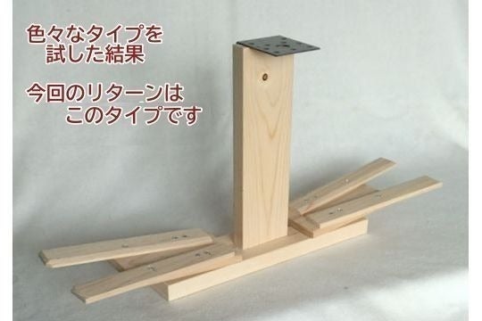 現在は量産への準備として、木工部品の加工治具や組み立て治具の構想と試作を繰り返しています。支援金は電動工具や作業台の購入等にも使わせていただきます。これまでに10個以上の試作品を繰り返し作って、3年位前に今の形に落ち着きました。