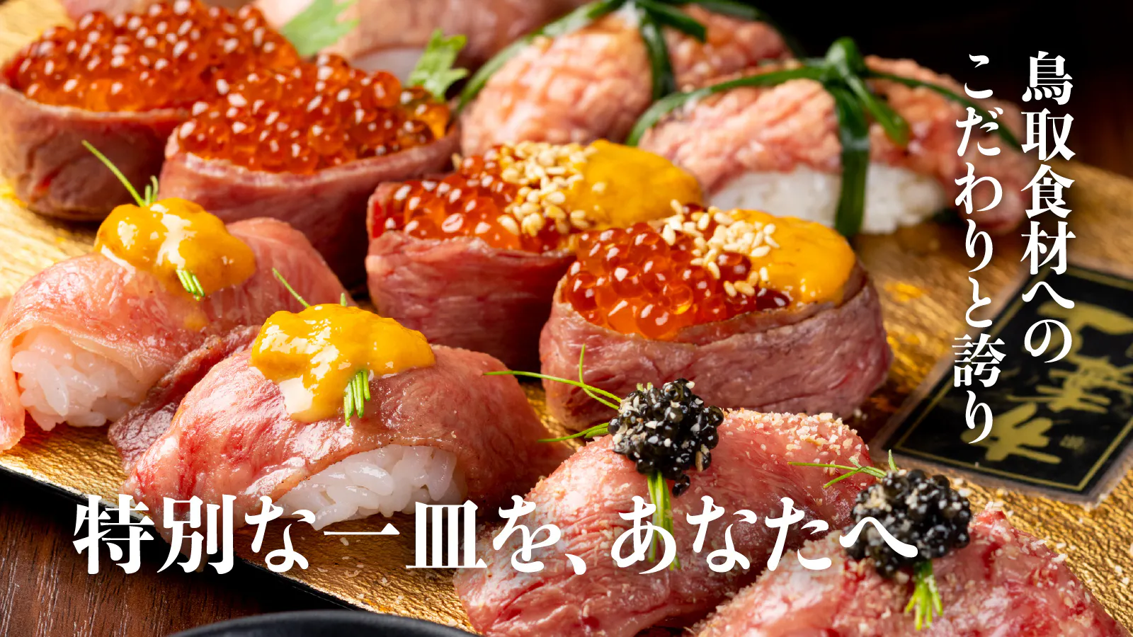 そんな想いから、上質な鳥取和牛「万葉牛」をはじめ、お米や野菜、お酒に至るまで、“ 鳥取県産” にこだわってメニューを提供しています。